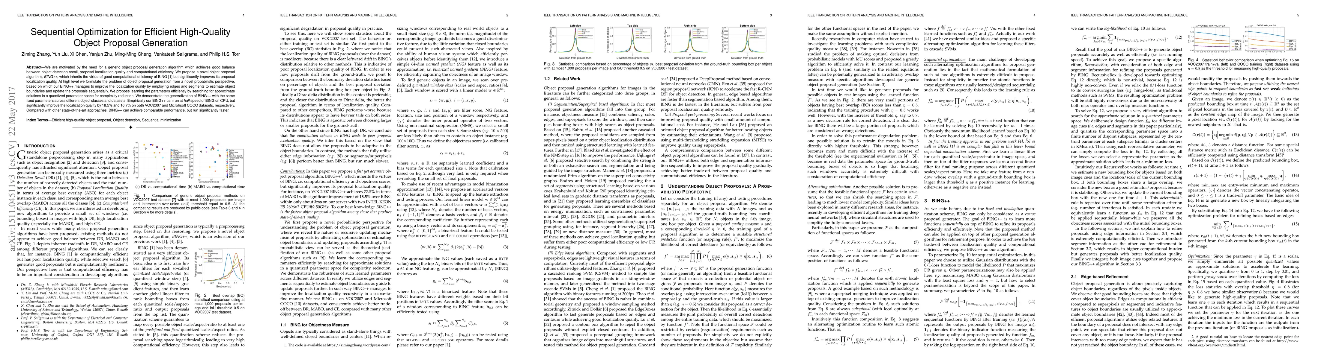 We are motivated by the need for a generic object proposal generation algorithm which achieves good balance between object detection recall, proposal localization quality and computational efficiency. We propose a novel object proposal algorithm, BING++, which inherits the virtue of good computational efficiency of BING but significantly improves its proposal localization quality. At high level we formulate the problem of object proposal generation from a novel probabilistic perspective, based on which our BING++ manages to improve the localization quality by employing edges and segments to estimate object boundaries and update the proposals sequentially. We propose learning the parameters efficiently by searching for approximate solutions in a quantized parameter space for complexity reduction. We demonstrate the generalization of BING++ with the same fixed parameters across different object classes and datasets. Empirically our BING++ can run at half speed of BING on CPU, but significantly improve the localization quality by 18.5% and 16.7% on both VOC2007 and Microhsoft COCO datasets, respectively. Compared with other state-of-the-art approaches, BING++ can achieve comparable performance, but run significantly faster.