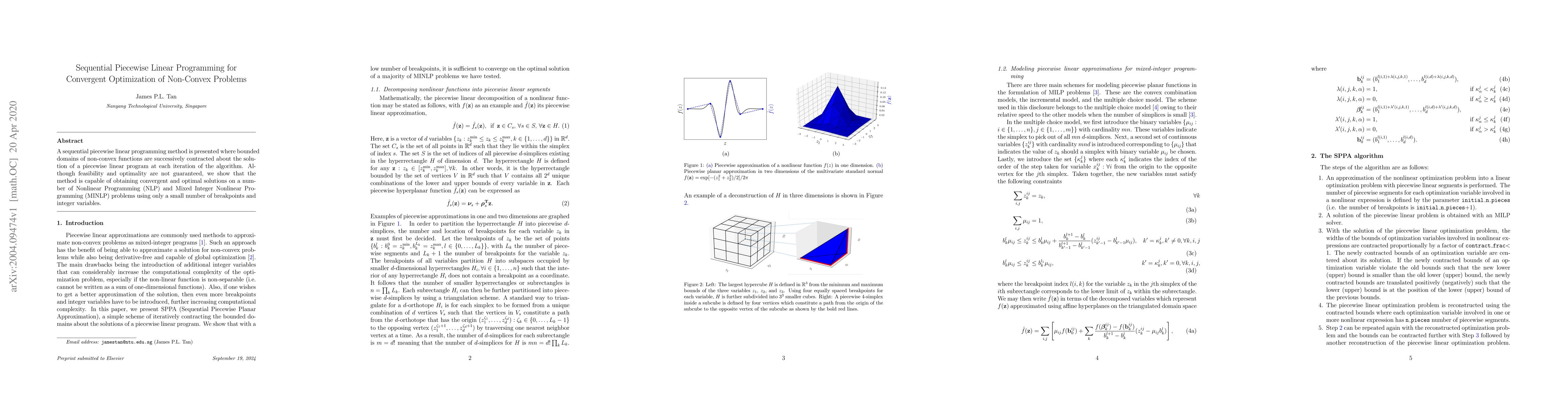 This paper introduces a sequential piecewise linear programming method that iteratively refines bounded domains of non-convex functions, demonstrating convergence and optimality in solving various Nonlinear Programming and Mixed Integer Nonlinear Programming problems with minimal breakpoints and integer variables. Although not guaranteed, the method shows promising results in practice.