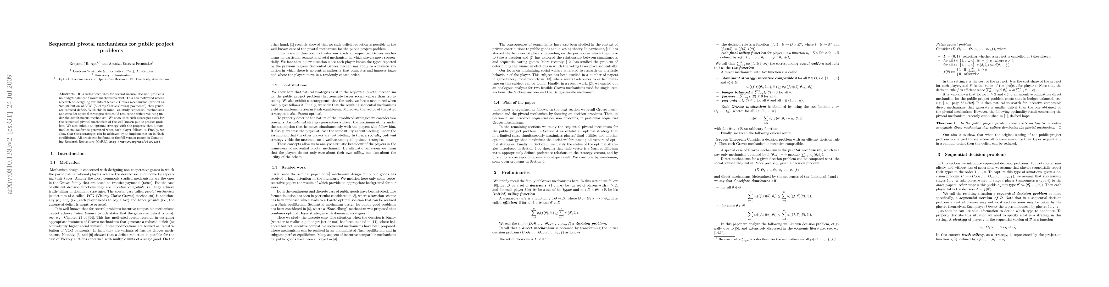 This paper explores sequential pivotal mechanisms for public project problems, demonstrating that they can reduce deficits compared to simultaneous mechanisms. It presents an optimal strategy that maximizes social welfare and shows its implementation in Nash equilibrium.