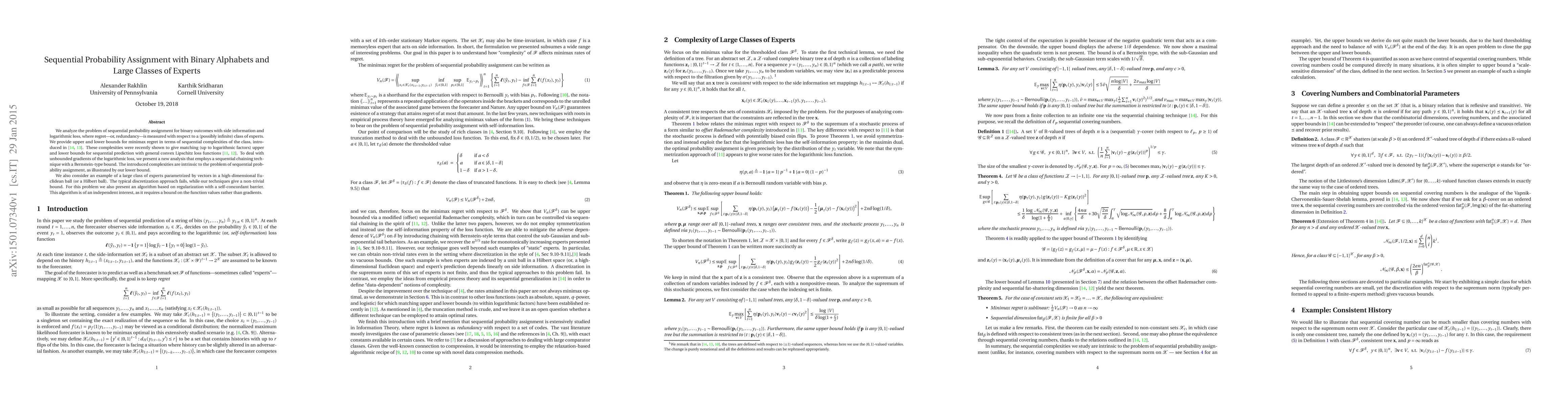Researchers develop new techniques to analyze and solve sequential probability assignment problems with binary outcomes and logarithmic loss functions, providing upper and lower bounds for minimax regret.