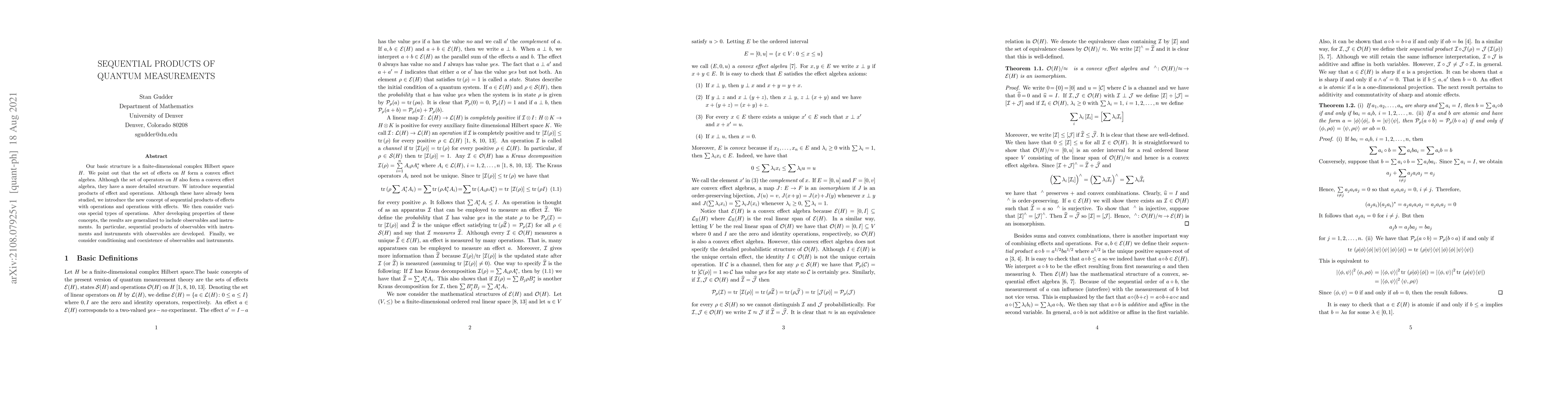 Our basic structure is a finite-dimensional complex Hilbert space $H$. We point out that the set of effects on $H$ form a convex effect algebra. Although the set of operators on $H$ also form a convex effect algebra, they have a more detailed structure. W introduce sequential products of effect and operations. Although these have already been studied, we introduce the new concept of sequential products of effects with operations and operations with effects. We then consider various special types of operations. After developing properties of these concepts, the results are generalized to include observables and instruments. In particular, sequential products of observables with instruments and instruments with observables are developed. Finally, we consider conditioning and coexistence of observables and instruments.