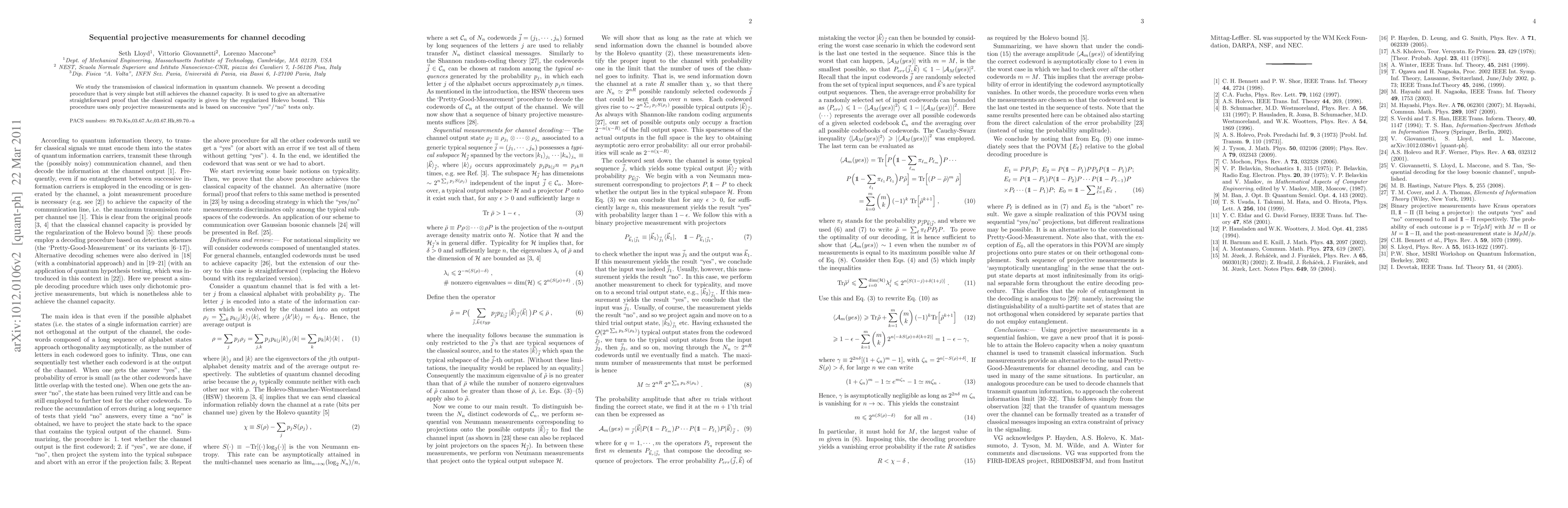 Researchers develop a simple yet effective decoding method for quantum channels that achieves channel capacity using only projective measurements and successive yes/no tests. This approach provides an alternative proof of the classical capacity being given by the regularized Holevo bound.