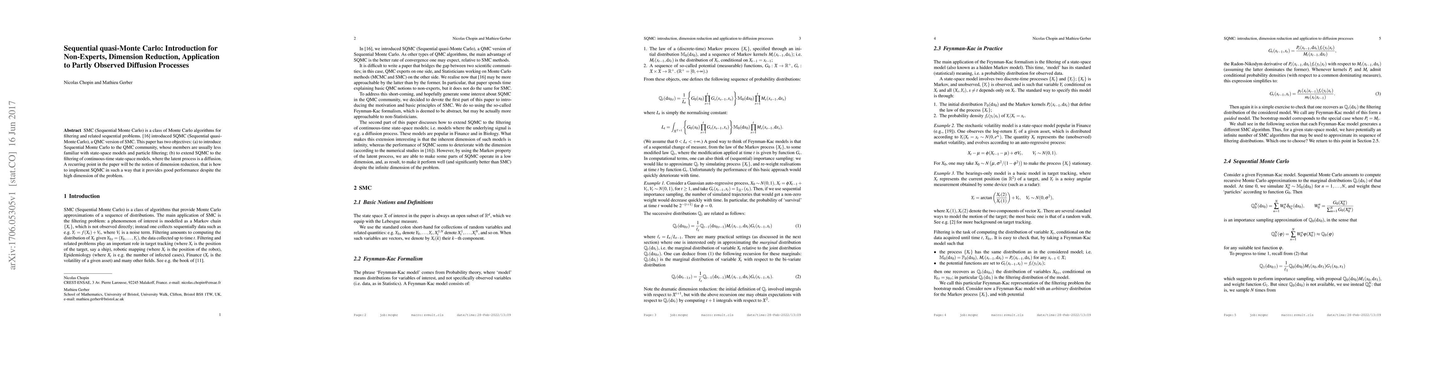 This paper introduces Sequential Monte Carlo (SMC) to the quasi-Monte Carlo (QMC) community, focusing on the new Sequential quasi-Monte Carlo (SQMC) method. It extends SQMC to filter continuous-time state-space models with diffusion processes, emphasizing dimension reduction for high-dimensional problems.