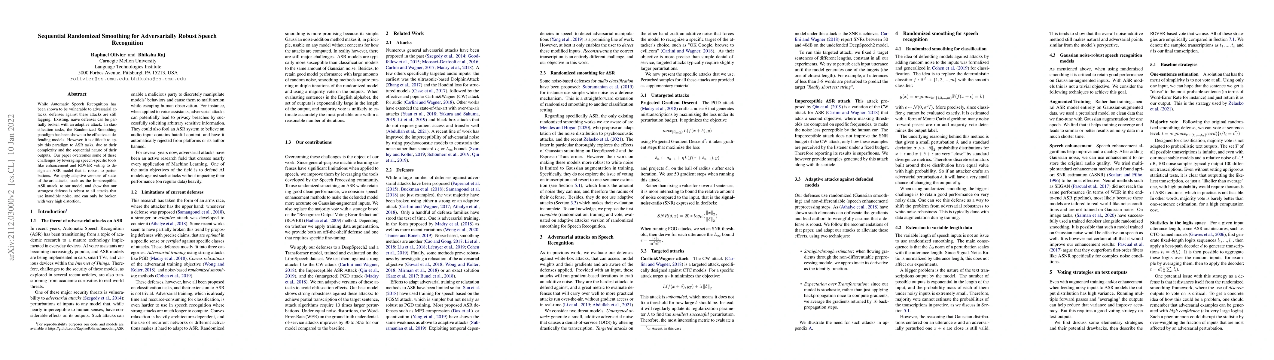 While Automatic Speech Recognition has been shown to be vulnerable to adversarial attacks, defenses against these attacks are still lagging. Existing, naive defenses can be partially broken with an adaptive attack. In classification tasks, the Randomized Smoothing paradigm has been shown to be effective at defending models. However, it is difficult to apply this paradigm to ASR tasks, due to their complexity and the sequential nature of their outputs. Our paper overcomes some of these challenges by leveraging speech-specific tools like enhancement and ROVER voting to design an ASR model that is robust to perturbations. We apply adaptive versions of state-of-the-art attacks, such as the Imperceptible ASR attack, to our model, and show that our strongest defense is robust to all attacks that use inaudible noise, and can only be broken with very high distortion.