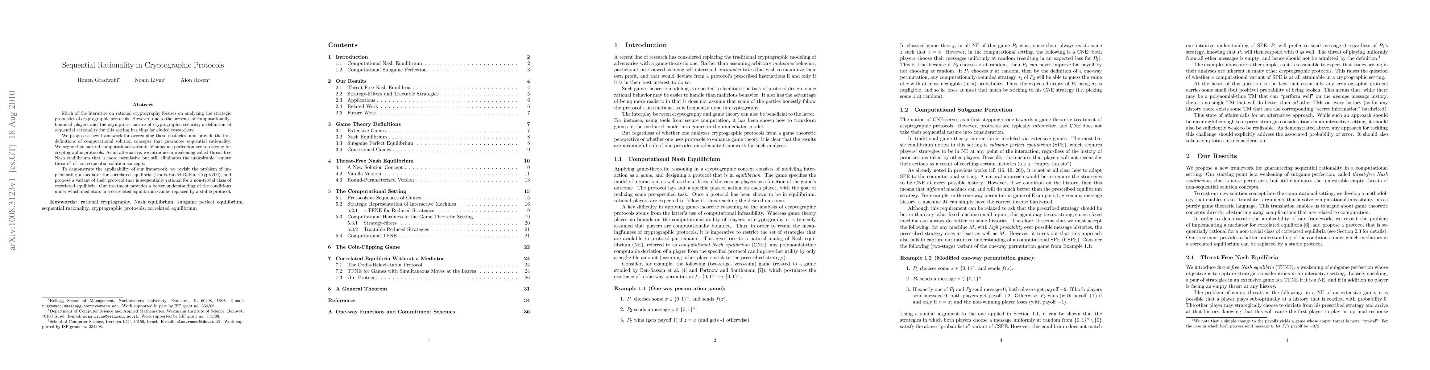 This paper proposes a new framework for defining sequential rationality in cryptographic protocols, introducing the concept of threat-free Nash equilibrium as a more suitable alternative to traditional subgame perfection. It demonstrates the framework's application by revisiting and improving a mediator protocol for correlated equilibria.