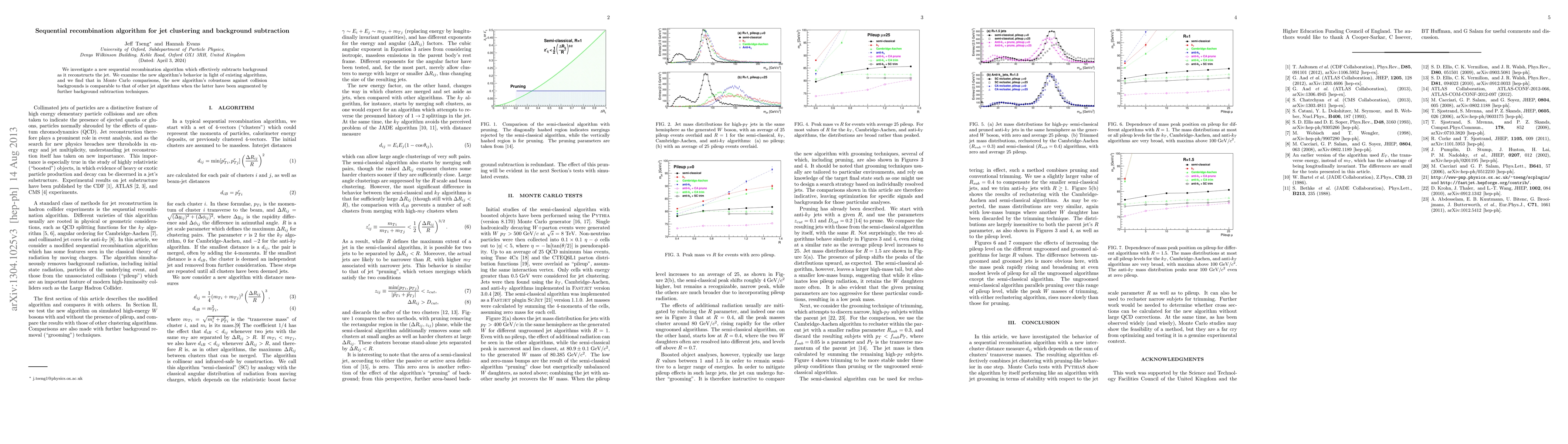 We investigate a new sequential recombination algorithm which effectively subtracts background as it reconstructs the jet. We examine the new algorithm's behavior in light of existing algorithms, and we find that in Monte Carlo comparisons, the new algorithm's robustness against collision backgrounds is comparable to that of other jet algorithms when the latter have been augmented by further background subtraction techniques.