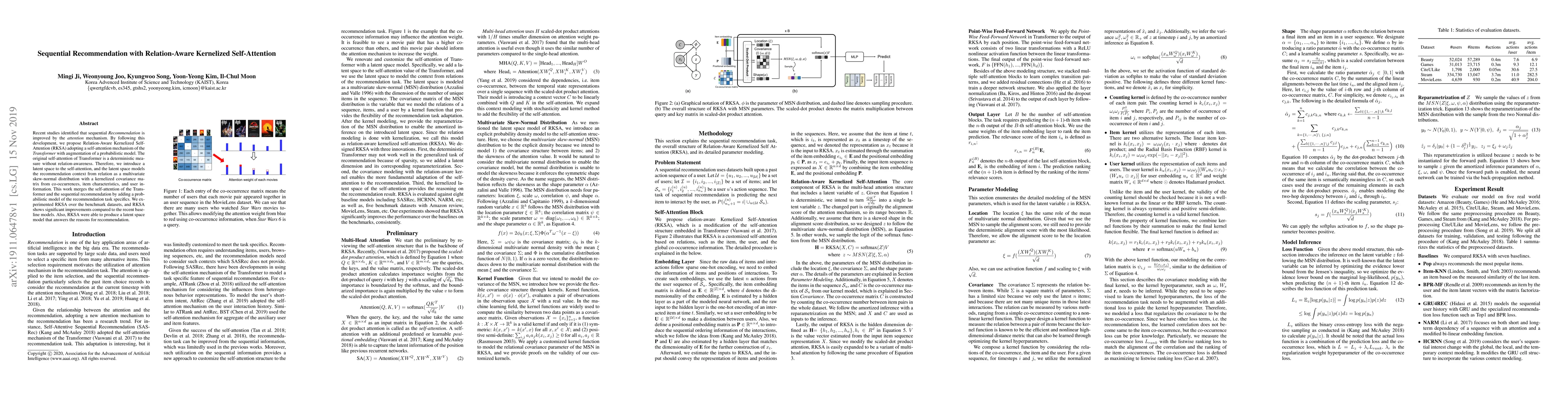 The paper proposes Relation-Aware Kernelized Self-Attention (RKSA) for sequential recommendation tasks, merging the self-attention of Transformer with a probabilistic model. RKSA models recommendation context from relations as a multivariate skew-normal distribution with a kernelized covariance matrix from co-occurrences, item characteristics, and user information.
