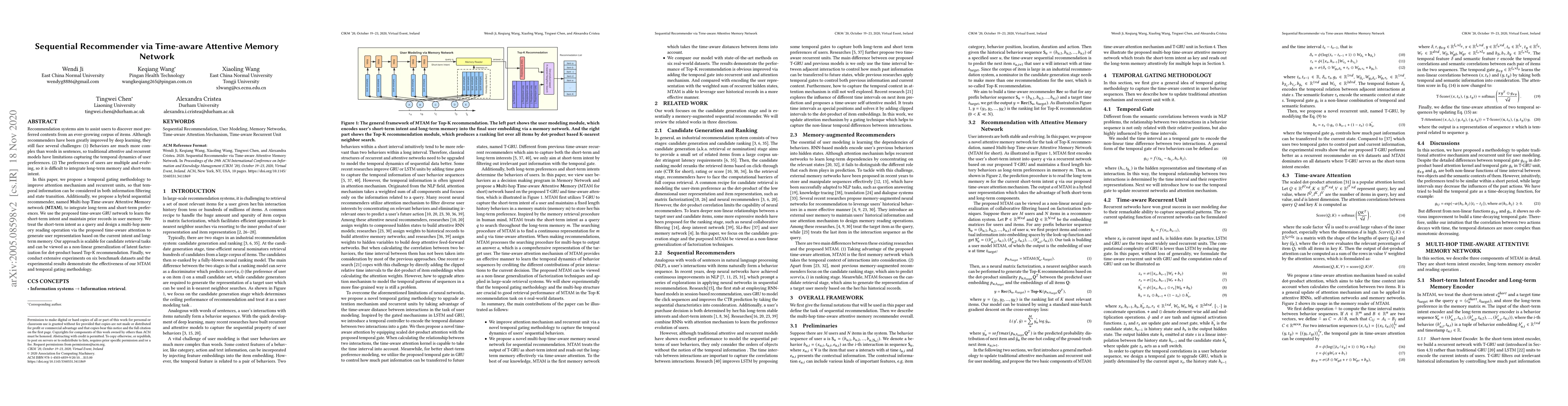 Recommendation systems aim to assist users to discover most preferred contents from an ever-growing corpus of items. Although recommenders have been greatly improved by deep learning, they still faces several challenges: (1) Behaviors are much more complex than words in sentences, so traditional attentive and recurrent models may fail in capturing the temporal dynamics of user preferences. (2) The preferences of users are multiple and evolving, so it is difficult to integrate long-term memory and short-term intent. In this paper, we propose a temporal gating methodology to improve attention mechanism and recurrent units, so that temporal information can be considered in both information filtering and state transition. Additionally, we propose a Multi-hop Time-aware Attentive Memory network (MTAM) to integrate long-term and short-term preferences. We use the proposed time-aware GRU network to learn the short-term intent and maintain prior records in user memory. We treat the short-term intent as a query and design a multi-hop memory reading operation via the proposed time-aware attention to generate user representation based on the current intent and long-term memory. Our approach is scalable for candidate retrieval tasks and can be viewed as a non-linear generalization of latent factorization for dot-product based Top-K recommendation. Finally, we conduct extensive experiments on six benchmark datasets and the experimental results demonstrate the effectiveness of our MTAM and temporal gating methodology.