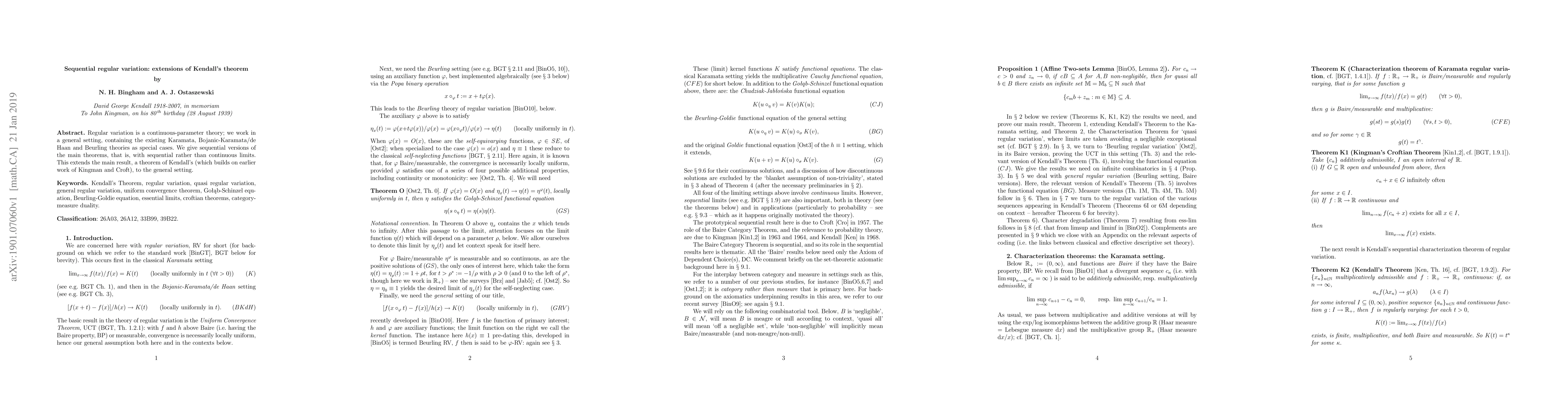 Regular variation is a continuous-parameter theory; we work in a general setting, containing the existing Karamata, Bojanic-Karamata/de Haan and Beurling theories as special cases. We give sequential versions of the main theorems, that is, with sequential rather than continuous limits. This extends the main result, a theorem of Kendall's (which builds on earlier work of Kingman and Croft), to the general setting.