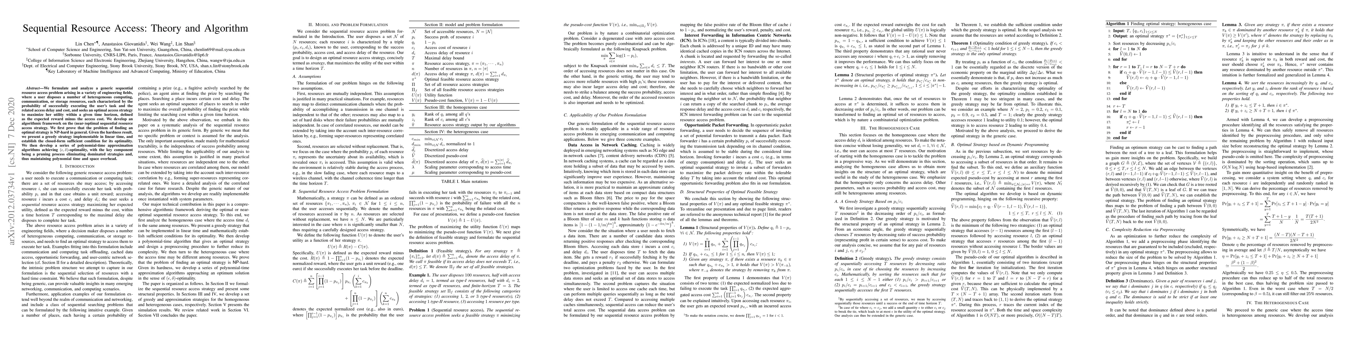 We formulate and analyze a generic sequential resource access problem arising in a variety of engineering fields, where a user disposes a number of heterogeneous computing, communication, or storage resources, each characterized by the probability of successfully executing the user's task and the related access delay and cost, and seeks an optimal access strategy to maximize her utility within a given time horizon, defined as the expected reward minus the access cost. We develop an algorithmic framework on the (near-)optimal sequential resource access strategy. We first prove that the problem of finding an optimal strategy is NP-hard in general. Given the hardness result, we present a greedy strategy implementable in linear time, and establish the closed-form sufficient condition for its optimality. We then develop a series of polynomial-time approximation algorithms achieving $(\epsilon,\delta)$-optimality, with the key component being a pruning process eliminating dominated strategies and, thus maintaining polynomial time and space overhead.