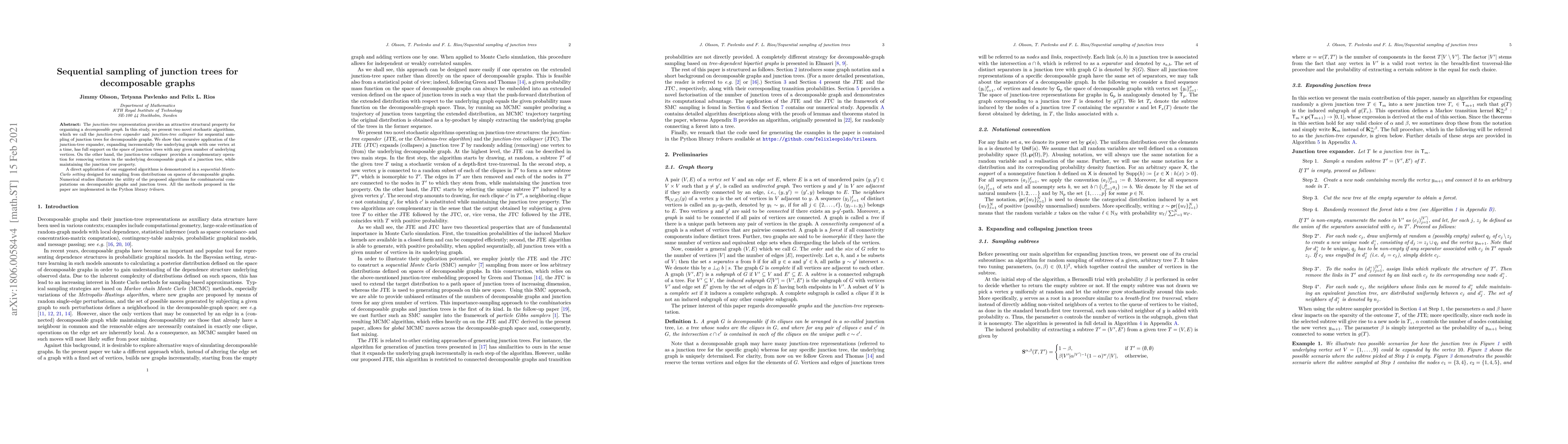 The paper presents two novel stochastic algorithms, the junction-tree expander and junction-tree collapser, for sequential sampling of junction trees for decomposable graphs. These algorithms are applied recursively and iteratively to incrementally build and collapse junction trees, maintaining the junction tree property.