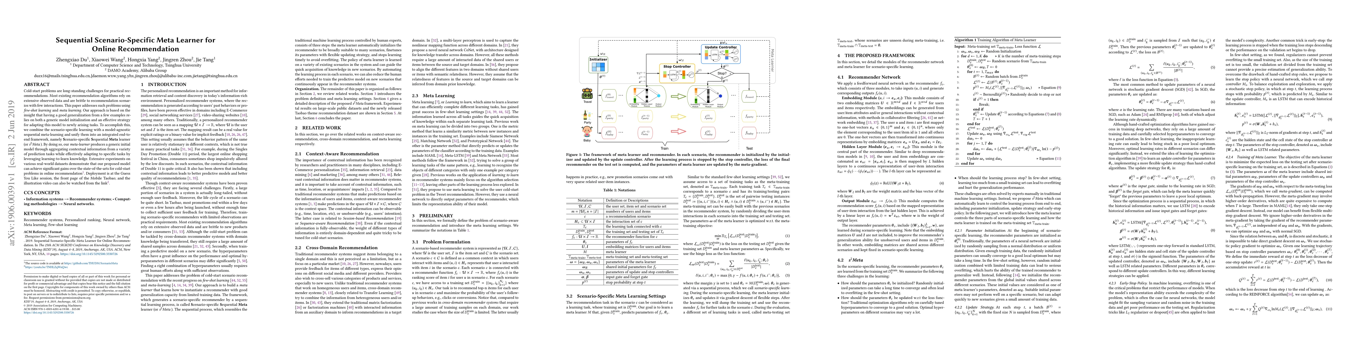 This paper proposes a sequential scenario-specific meta learner for online recommendation, addressing cold-start problems using few-shot learning and meta learning. The approach combines scenario-specific learning with a model-agnostic sequential meta-learning, forming an integrated end-to-end framework called Scenario-specific Sequential Meta learner (s^2 meta).