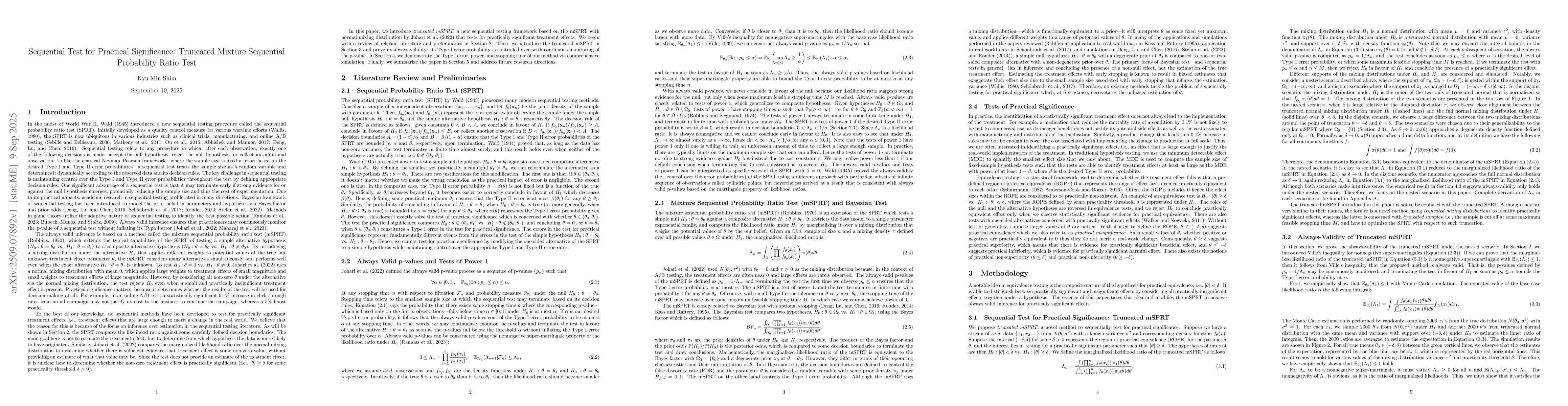 We present a sequential testing method to identify a practically significant effect. We build on the existing mixture sequential probability ratio test (mSPRT) that can sequentially test for a non-zero treatment effect by using a truncated mixing distribution to differentiate between effects that are large enough to merit a real world action versus that are non-zero but too small to merit a real world action. We verify the Type-I error control of our method theoretically and empirically. We also extend this idea to sequentially test for one-sided practical significance such as non-inferiority testing, and show that we may still effectively control the Type-I error rate.