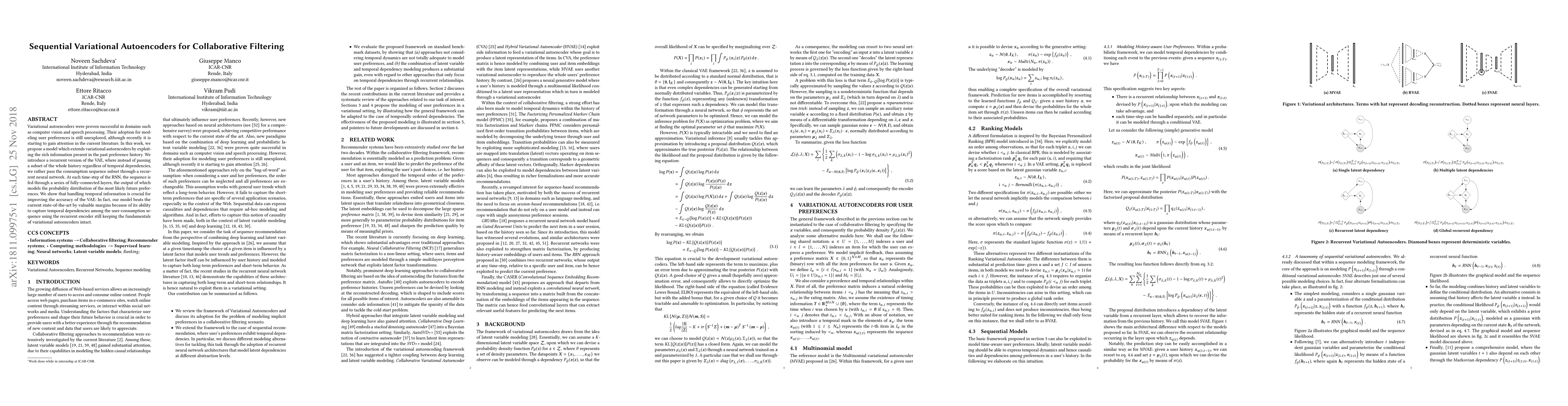 This paper proposes a sequential variational autoencoder with a recurrent neural network to model user preferences by leveraging temporal dependencies in user consumption history. The model outperforms current state-of-the-art methods by capturing temporal patterns, demonstrating the importance of temporal information in collaborative filtering.
