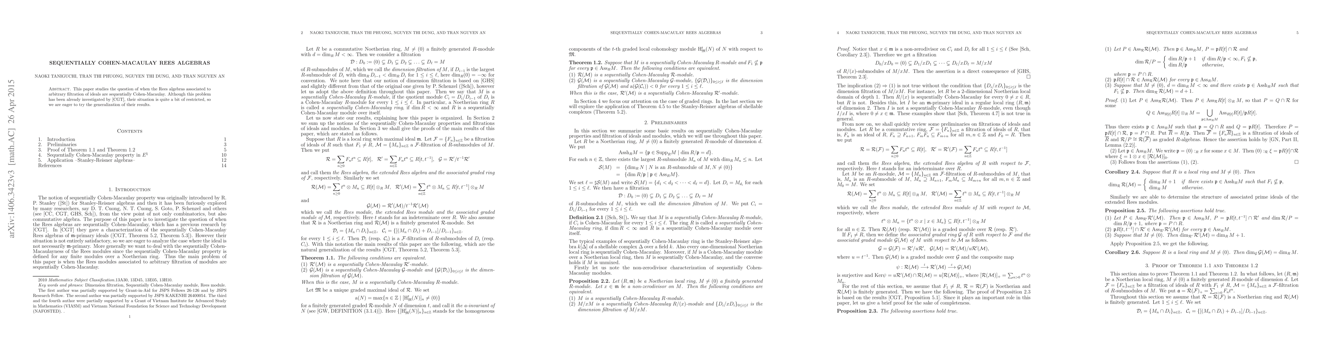 This paper generalizes previous results on sequentially Cohen-Macaulay Rees algebras by investigating their properties in the context of arbitrary filtration of ideals, extending beyond the restrictions set by prior studies by N. T. Cuong, S. Goto, and H. L. Truong.