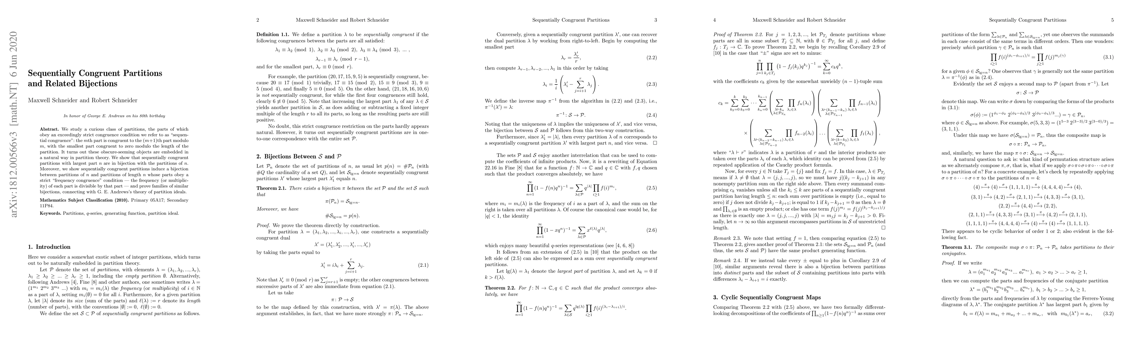 We study a curious class of partitions, the parts of which obey an exceedingly strict congruence condition we refer to as "sequential congruence": the $m$th part is congruent to the $(m+1)$th part modulo $m$, with the smallest part congruent to zero modulo the length of the partition. It turns out these obscure-seeming objects are embedded in a natural way in partition theory. We show that sequentially congruent partitions with largest part $n$ are in bijection with the partitions of $n$. Moreover, we show sequentially congruent partitions induce a bijection between partitions of $n$ and partitions of length $n$ whose parts obey a strict "frequency congruence" condition -- the frequency (or multiplicity) of each part is divisible by that part -- and prove families of similar bijections, connecting with G. E. Andrews's theory of partition ideals.