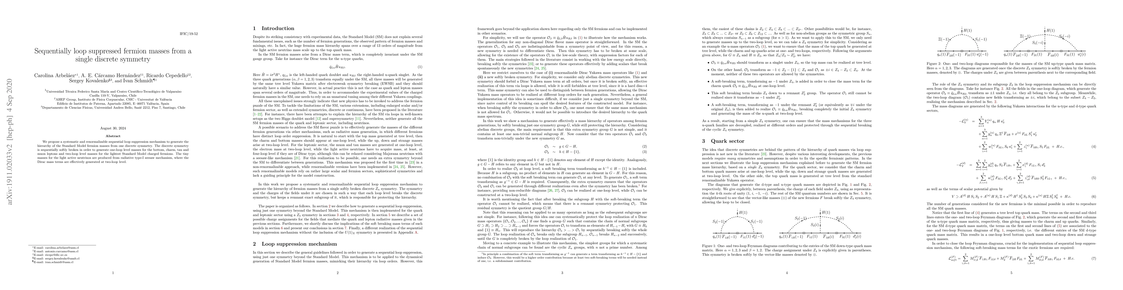 Researchers propose a new mechanism to generate Standard Model fermion masses from one discrete symmetry, using sequential loop suppression to produce a hierarchy of masses for leptons and charged fermions.