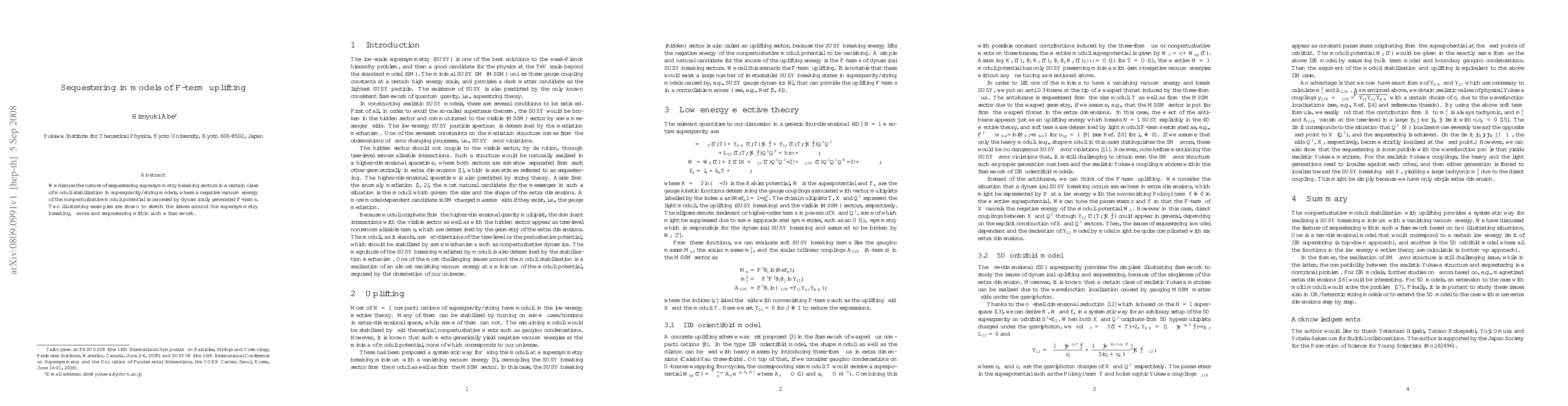 This paper explores the role of sequestering in supersymmetry breaking sectors within a specific class of F-term uplifting models in supergravity/string theory. It examines how dynamically generated F-terms can cancel the negative vacuum energy of nonperturbative moduli potentials, using two examples to highlight the complexities of supersymmetry breaking, flavors, and sequestering within this framework.