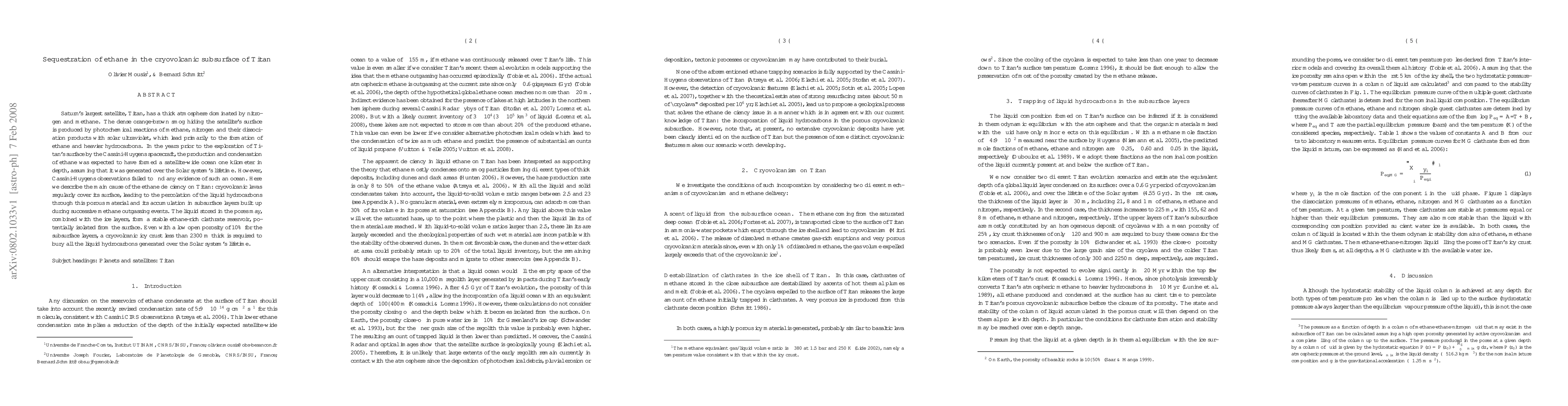 Saturn's largest satellite, Titan, has a thick atmosphere dominated by nitrogen and methane. The dense orange-brown smog hiding the satellite's surface is produced by photochemical reactions of methane, nitrogen and their dissociation products with solar ultraviolet, which lead primarily to the formation of ethane and heavier hydrocarbons. In the years prior to the exploration of Titan's surface by the Cassini-Huygens spacecraft, the production and condensation of ethane was expected to have formed a satellite-wide ocean one kilometer in depth, assuming that it was generated over the Solar system's lifetime. However, Cassini-Huygens observations failed to find any evidence of such an ocean. Here we describe the main cause of the ethane deficiency on Titan: cryovolcanic lavas regularly cover its surface, leading to the percolation of the liquid hydrocarbons through this porous material and its accumulation in subsurface layers built up during successive methane outgassing events. The liquid stored in the pores may, combined with the ice layers, form a stable ethane-rich clathrate reservoir, potentially isolated from the surface. Even with a low open porosity of 10% for the subsurface layers, a cryovolcanic icy crust less than 2300 m thick is required to bury all the liquid hydrocarbons generated over the Solar system's lifetime.