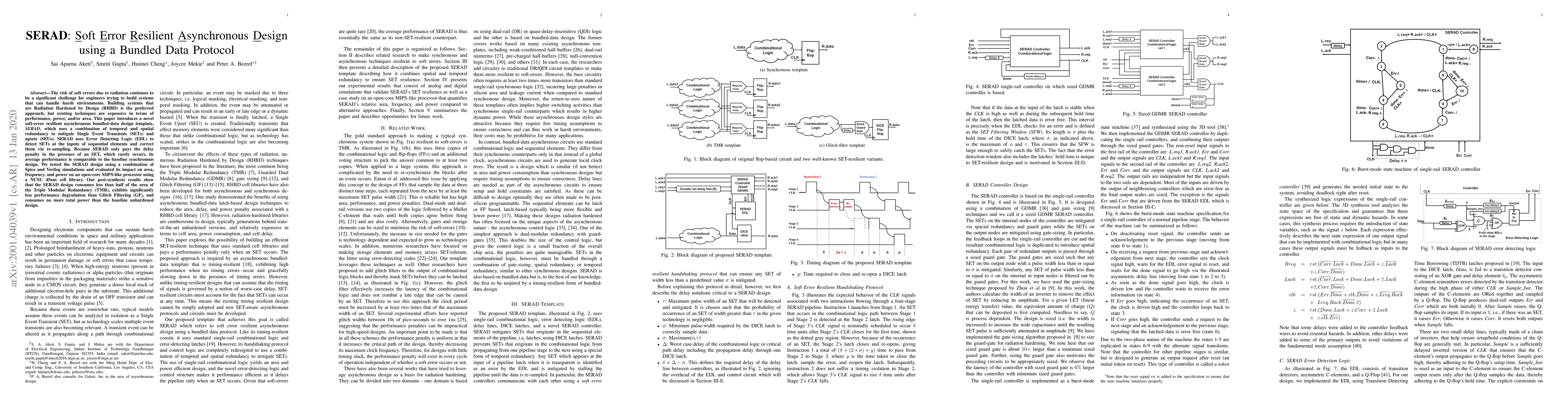 This paper introduces SERAD, a novel asynchronous design template that leverages bundled-data protocols and temporal/spatial redundancy to mitigate soft errors from radiation. SERAD employs Error Detecting Logic to detect and correct Single Event Transients, achieving comparable performance to synchronous designs while using less area and power than traditional radiation-hardened techniques.