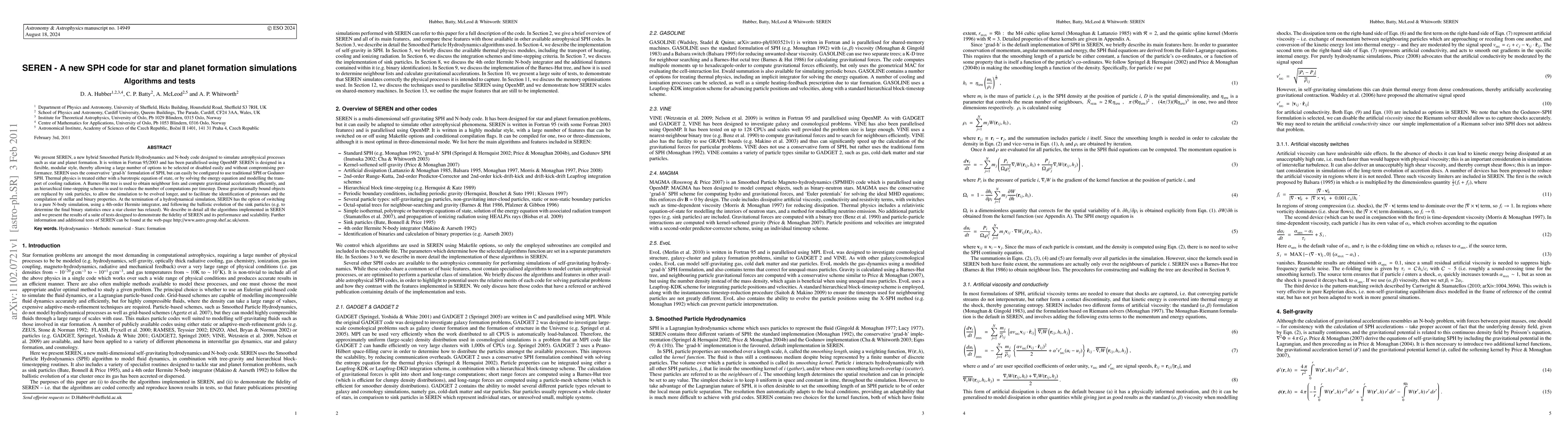 SEREN is a new hybrid SPH and N-body code for simulating star and planet formation, written in Fortran and parallelized with OpenMP. It employs flexible, modular design and supports various SPH formulations and thermal physics models, efficiently handling gravitational computations and long-term evolution of simulations.