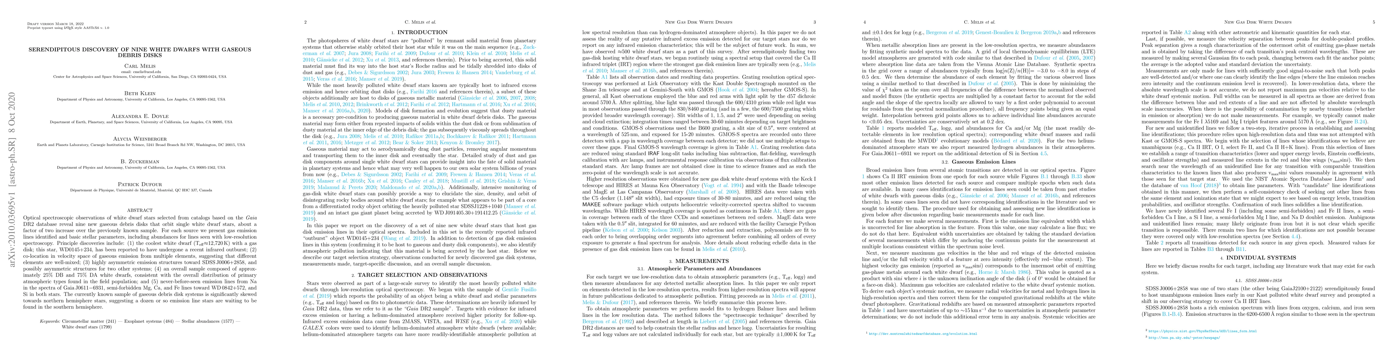 This study identifies nine new gaseous debris disks around white dwarf stars, doubling the previously known sample. Key findings include the coolest white dwarf with a gas disk, mixed elemental gas, and asymmetric emission structures, along with the detection of new emission lines from elements like Na, Mg, Ca, Fe, and Si.