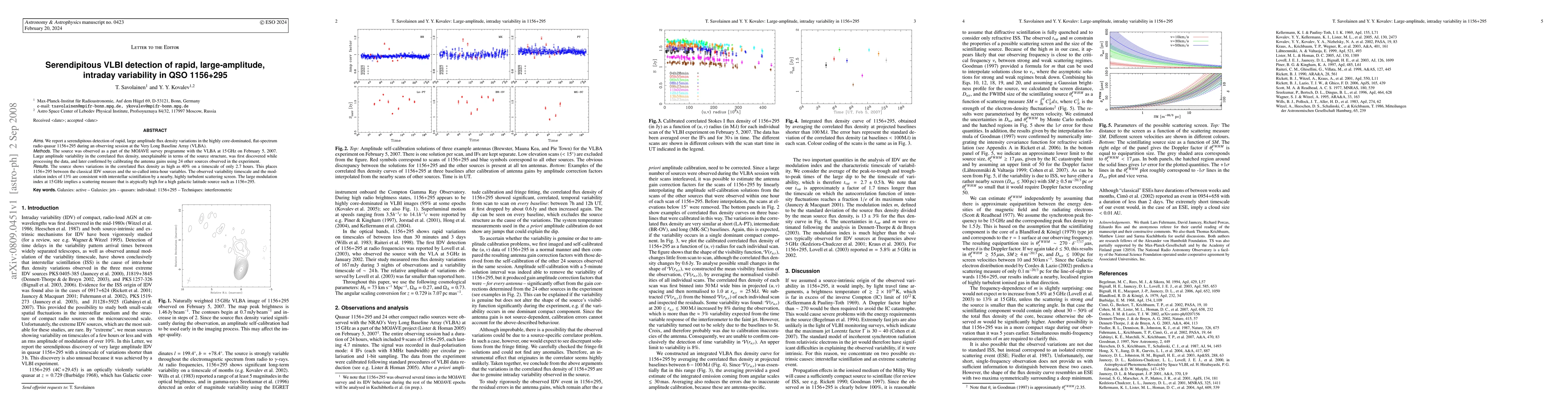 We report a serendipitous detection of rapid, large amplitude flux density variations in the highly core-dominated, flat-spectrum radio quasar 1156+295 during an observing session at the Very Long Baseline Array (VLBA). The source was observed as a part of the MOJAVE survey programme with the VLBA at 15 GHz on February 5, 2007. Large amplitude variability in the correlated flux density, unexplainable in terms of the source structure, was first discovered while processing the data, and later confirmed by calibrating the antenna gains using 24 other sources observed in the experiment. The source shows variations in the correlated flux density as high as 40% on a timescale of only 2.7 hours. This places 1156+295 between the classical IDV sources and the so-called intra-hour variables. The observed variability timescale and the modulation index of 13% are consistent with interstellar scintillation by a nearby, highly turbulent scattering screen. The large modulation index at 15 GHz implies a scattering measure that is atypically high for a high galactic latitude source such as 1156+295.