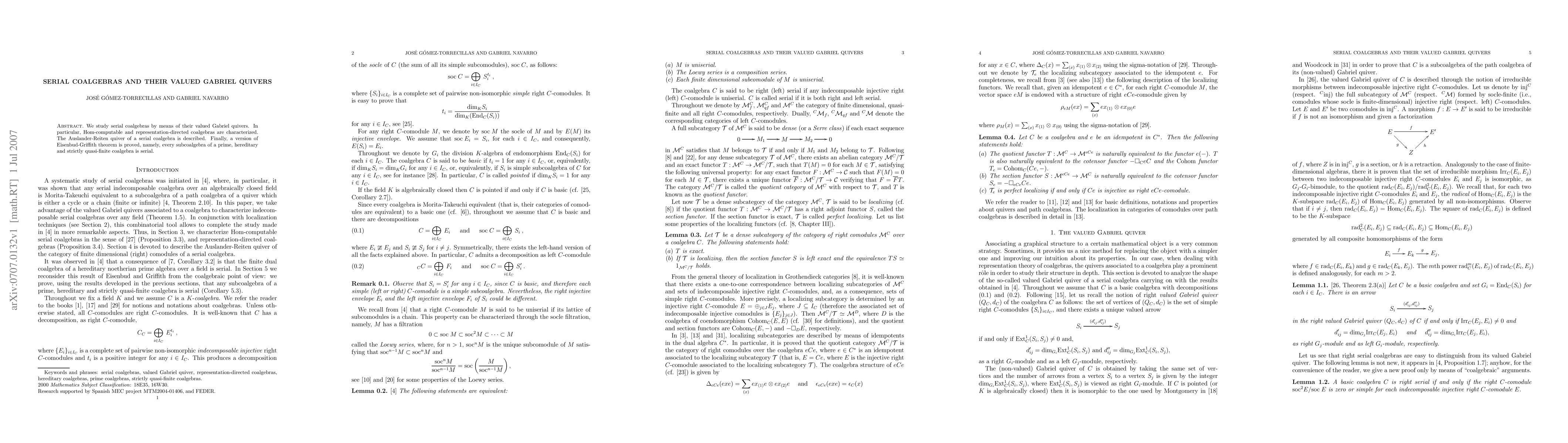 This paper investigates serial coalgebras through their valued Gabriel quivers, characterizing Hom-computable and representation-directed coalgebras, and proving a coalgebraic version of the Eisenbud-Griffith theorem. It also describes the Auslander-Reiten quiver for serial coalgebras.