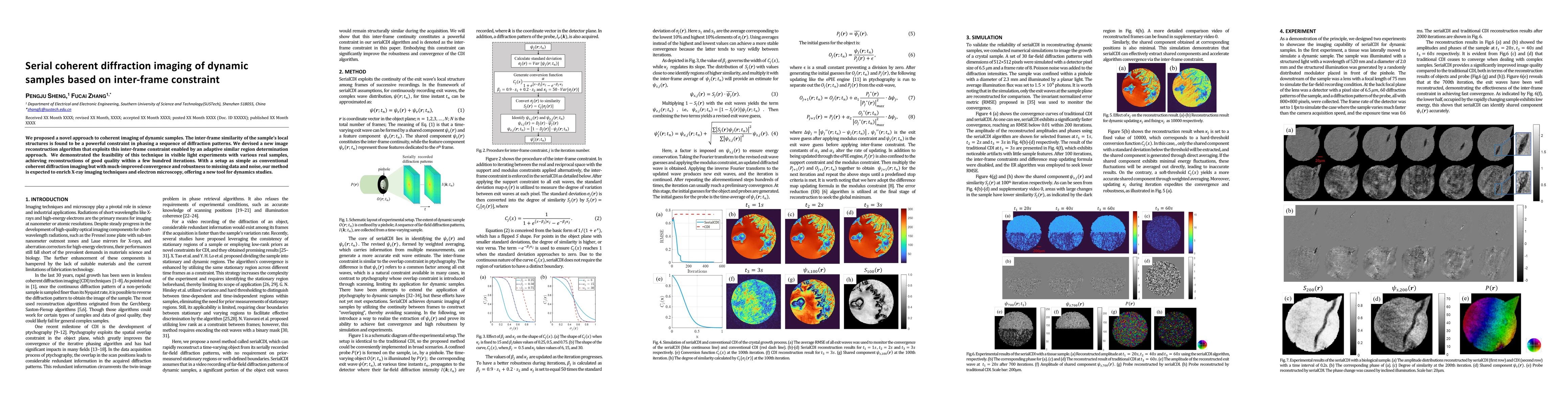 This paper introduces a new coherent imaging method for dynamic samples that leverages inter-frame constraints for improved phasing of diffraction patterns. The proposed algorithm, based on adaptive region determination, demonstrates good reconstruction quality in visible light experiments, showing potential to enhance X-ray imaging and electron microscopy for dynamic studies.