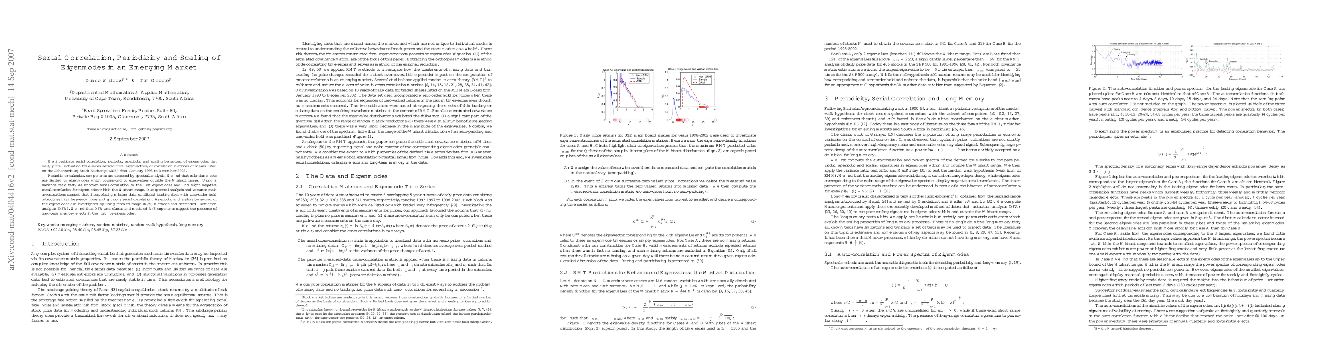A study on stock market data from the Johannesburg Stock Exchange finds evidence of serial correlation in daily price fluctuations, while periodic patterns are limited to certain eigenmodes. Long-term memory effects are detected in some eigenmodes using detrended fluctuation analysis.
