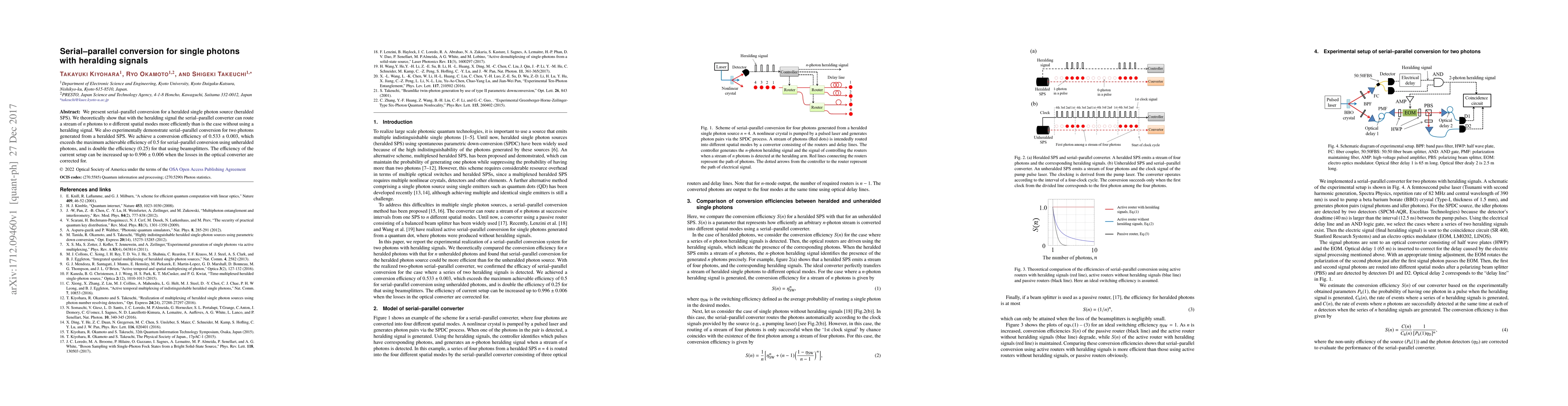 This paper presents a method for efficient serial-parallel conversion of heralded single photons using heralding signals, demonstrating an experimental efficiency of 0.533 ± 0.003, which exceeds the theoretical limit for unheralded photons and doubles the efficiency of traditional beamsplitters.
