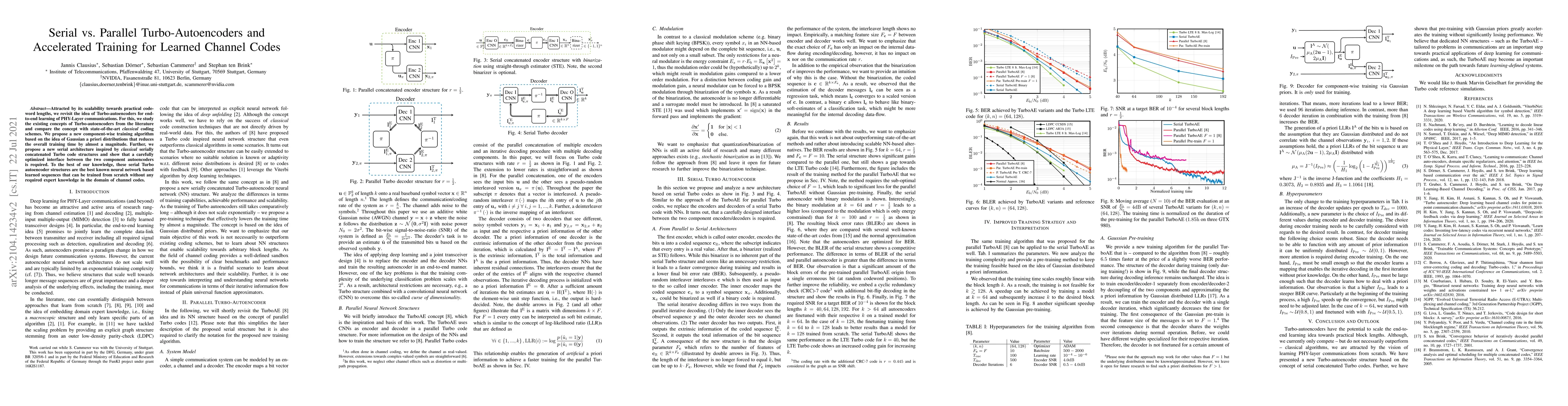 This paper compares serial and parallel Turbo-autoencoders for end-to-end learning of PHY-Layer communications, proposing a new training algorithm that reduces training time significantly. It introduces a serial architecture inspired by Turbo codes, demonstrating optimized interfaces between component autoencoders.