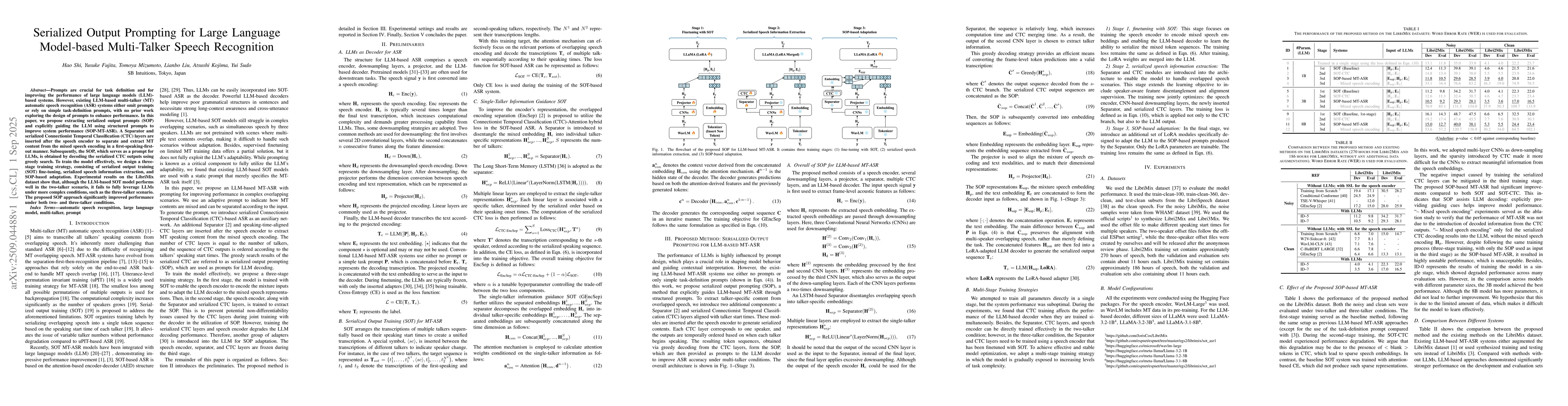 Prompts are crucial for task definition and for improving the performance of large language models (LLM)-based systems. However, existing LLM-based multi-talker (MT) automatic speech recognition (ASR) systems either omit prompts or rely on simple task-definition prompts, with no prior work exploring the design of prompts to enhance performance. In this paper, we propose extracting serialized output prompts (SOP) and explicitly guiding the LLM using structured prompts to improve system performance (SOP-MT-ASR). A Separator and serialized Connectionist Temporal Classification (CTC) layers are inserted after the speech encoder to separate and extract MT content from the mixed speech encoding in a first-speaking-first-out manner. Subsequently, the SOP, which serves as a prompt for LLMs, is obtained by decoding the serialized CTC outputs using greedy search. To train the model effectively, we design a three-stage training strategy, consisting of serialized output training (SOT) fine-tuning, serialized speech information extraction, and SOP-based adaptation. Experimental results on the LibriMix dataset show that, although the LLM-based SOT model performs well in the two-talker scenario, it fails to fully leverage LLMs under more complex conditions, such as the three-talker scenario. The proposed SOP approach significantly improved performance under both two- and three-talker conditions.