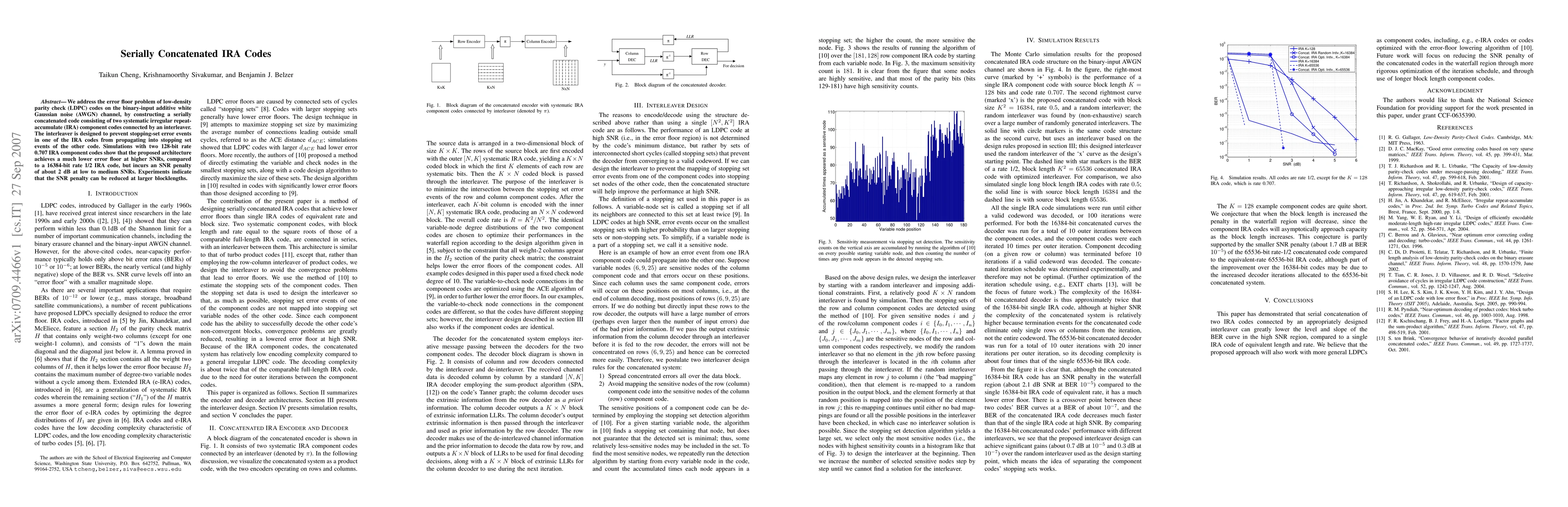 Researchers develop a new error-correcting code that improves low-density parity check codes' performance at high SNRs but incurs a small penalty at lower SNRs.