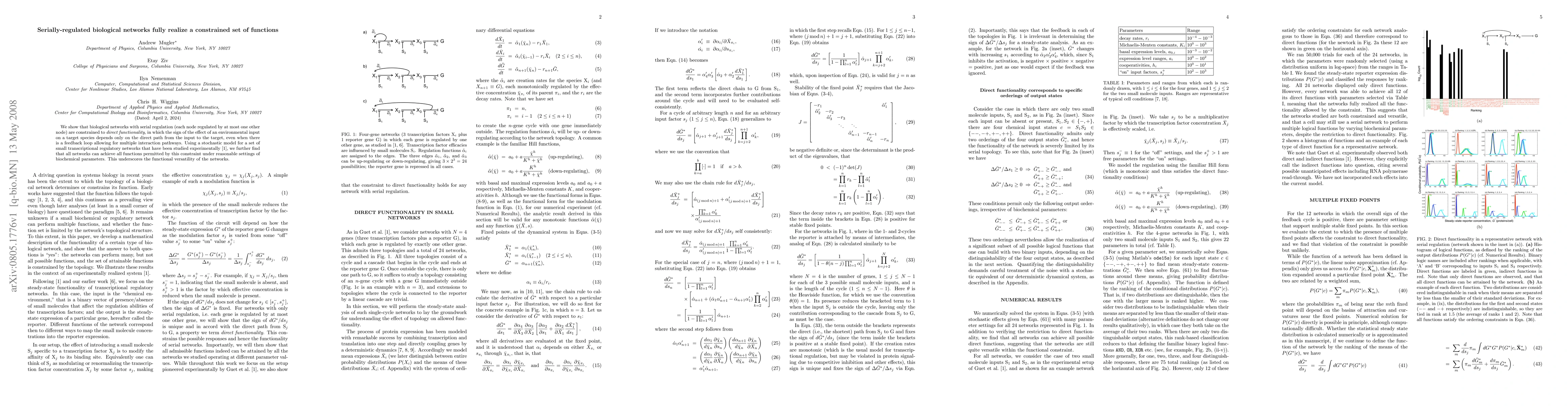 Biological networks with serial regulation can achieve a wide range of functions despite having feedback loops, under certain conditions. This suggests that these networks have more functional versatility than previously thought.