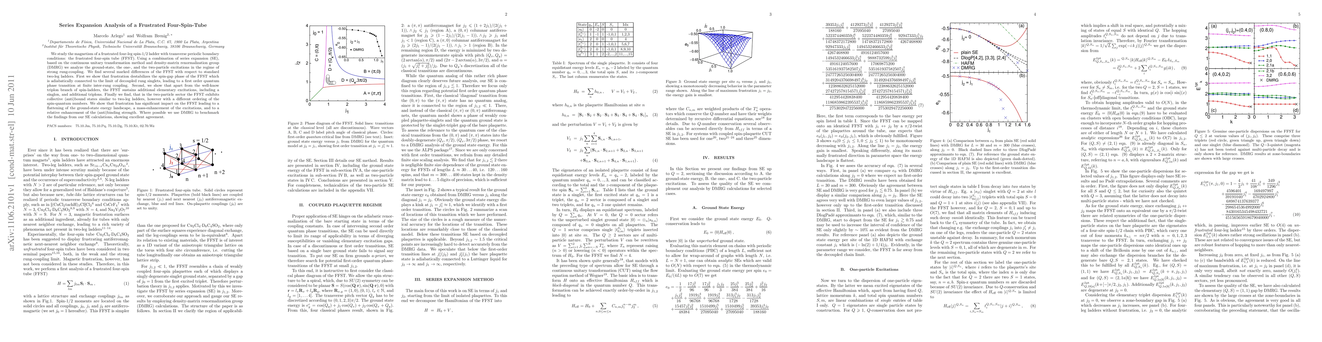 This paper investigates the magnetism of a frustrated four-spin-tube using series expansion and density-matrix renormalization group methods. It reveals that frustration destabilizes the spin-gap phase, leading to a first-order quantum phase transition, and introduces additional elementary excitations beyond standard triplons.