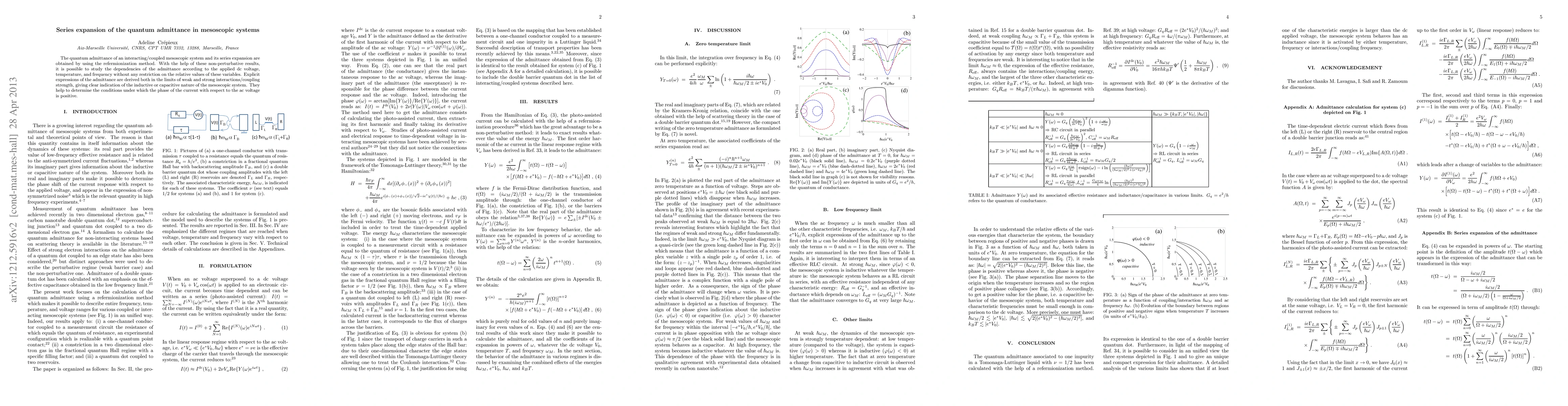 This paper derives the quantum admittance series expansion for interacting mesoscopic systems using the refermionization method, providing non-perturbative results to study admittance dependencies on dc voltage, temperature, and frequency. It reveals the inductive or capacitive nature under weak and strong interactions and identifies conditions for positive current phase relative to ac voltage.