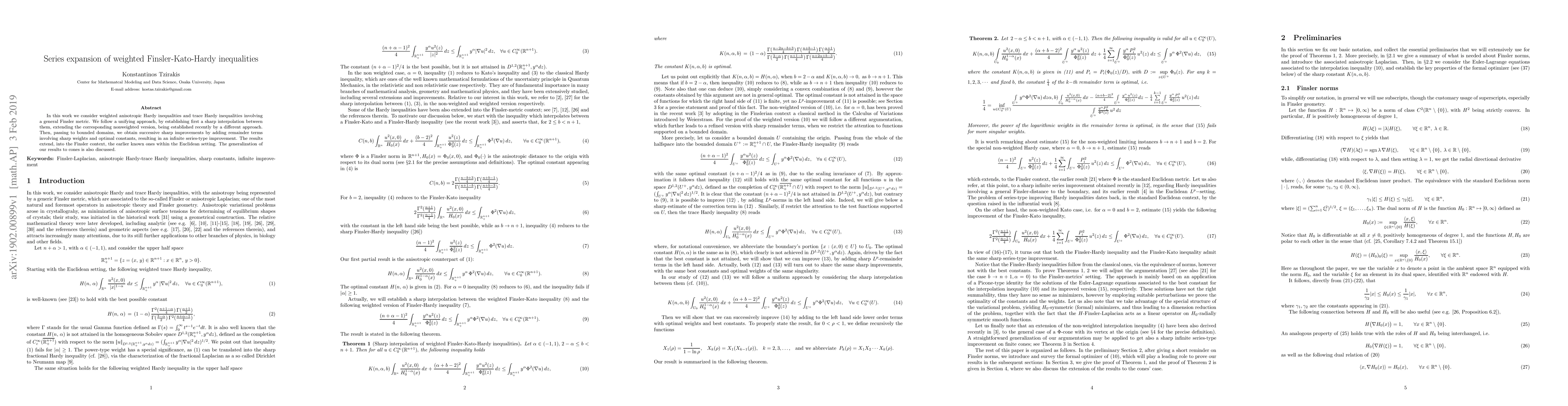 This paper establishes a series of improvements to weighted Finsler-Kato-Hardy inequalities, resulting in sharp and infinite series-type bounds for trace Hardy inequalities involving general Finsler metrics.