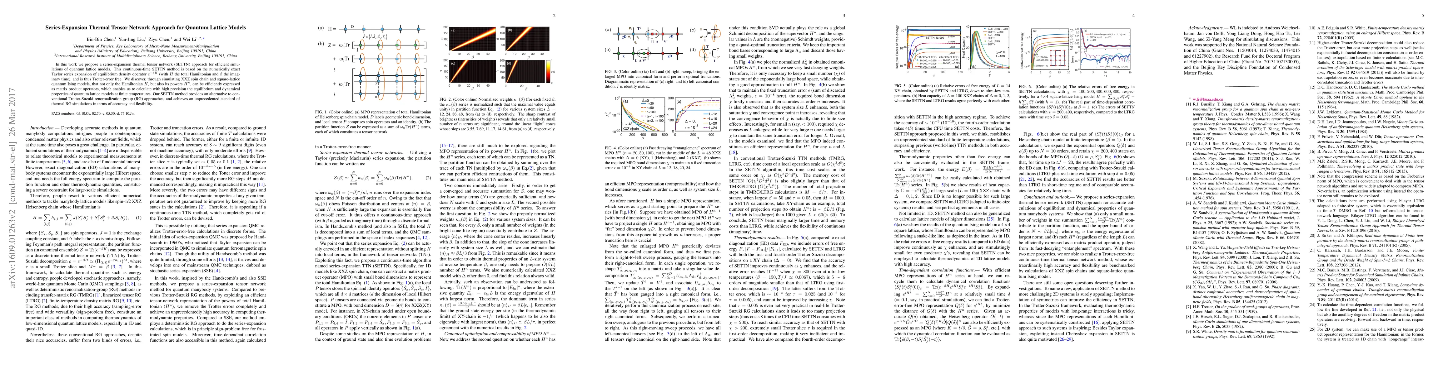 In this work we propose a series-expansion thermal tensor network (SETTN) approach for efficient simulations of quantum lattice models. This continuous-time SETTN method is based on the numerically exact Taylor series expansion of equilibrium density operator $e^{-\beta H}$ (with $H$ the total Hamiltonian and $\beta$ the imaginary time), and is thus Trotter-error free. We discover, through simulating XXZ spin chain and square-lattice quantum Ising models, that not only the Hamiltonian $H$, but also its powers $H^n$, can be efficiently expressed as matrix product operators, which enables us to calculate with high precision the equilibrium and dynamical properties of quantum lattice models at finite temperatures. Our SETTN method provides an alternative to conventional Trotter-Suzuki renormalization group (RG) approaches, and achieves an unprecedented standard of thermal RG simulations in terms of accuracy and flexibility.