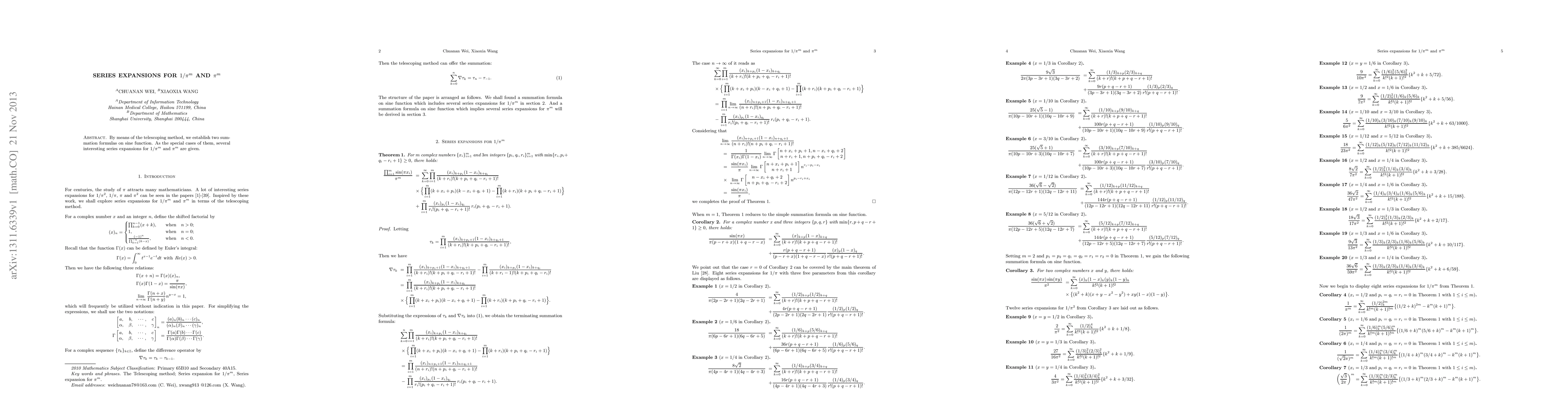 By means of the telescoping method, we establish two sum- mation formulas on sine function. As the special cases of them, several interesting series expansions for $1/\pi^m$ and $\pi^m$.