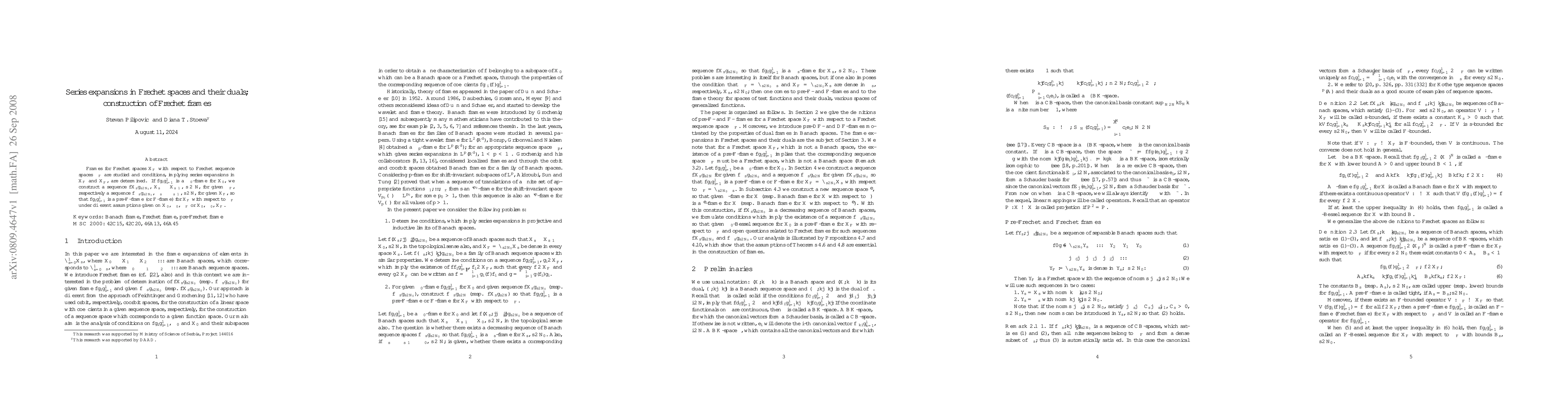 Frames for Fr\'echet spaces $X_F$ with respect to Fr\'echet sequence spaces $\Theta_F$ are studied and conditions, implying series expansions in $X_F$ and $X_F^*$, are determined. If $\{g_i\}$ is a $\Theta_0$-frame for $X_0$, we construct a sequence $\{X_s\}_{s\in {\mathbb N}_0}$, $X_s\subset X_{s-1}$, $s\in {\mathbb N}$, for given $\Theta_F$, respectively a sequence $\{\Theta_s\}_{s\in {\mathbb N}_0}$, $\Theta_s\subset \Theta_{s-1}$, $s\in {\mathbb N}$, for given $X_F$, so that $\{g_i\}$ is a pre-$F$-frame (or $F$-frame) for $X_F$ with respect to $\Theta_F$ under different assumptions given on $X_0$, $\Theta_0$, $\Theta_F$ or $X_0$, $\Theta_0$, $X_F$.