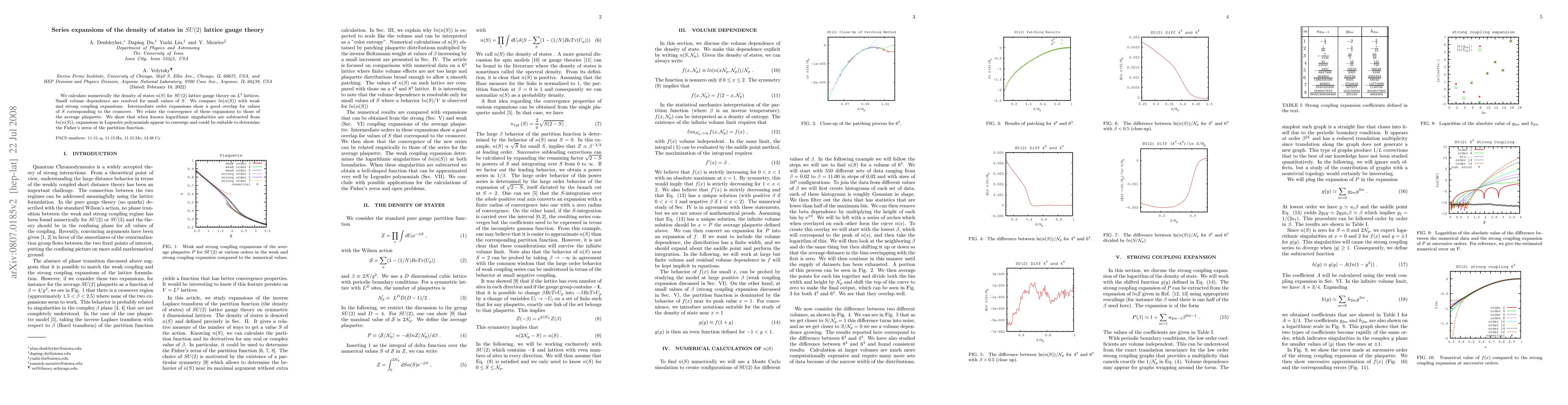Researchers numerically calculated the density of states in SU(2) lattice gauge theory and compared it to weak and strong coupling expansions, finding a good overlap at intermediate values of S.