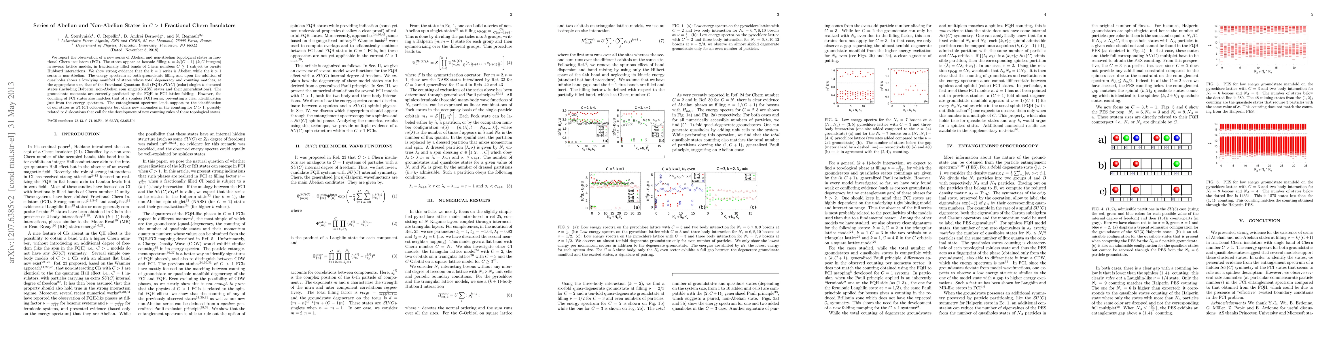 We report the observation of a new series of Abelian and non-Abelian topological states in fractional Chern insulators (FCI). The states appear at bosonic filling nu= k/(C+1) (k, C integers) in several lattice models, in fractionally filled bands of Chern numbers C>=1 subject to on-site Hubbard interactions. We show strong evidence that the k=1 series is Abelian while the k>1 series is non-Abelian. The energy spectrum at both groundstate filling and upon the addition of quasiholes shows a low-lying manifold of states whose total degeneracy and counting matches, at the appropriate size, that of the Fractional Quantum Hall (FQH) SU(C) (color) singlet k-clustered states (including Halperin, non-Abelian spin singlet states and their generalizations). The groundstate momenta are correctly predicted by the FQH to FCI lattice folding. However, the counting of FCI states also matches that of a spinless FQH series, preventing a clear identification just from the energy spectrum. The entanglement spectrum lends support to the identification of our states as SU(C) color-singlets but offers new anomalies in the counting for C>1, possibly related to dislocations that call for the development of new counting rules of these topological states.