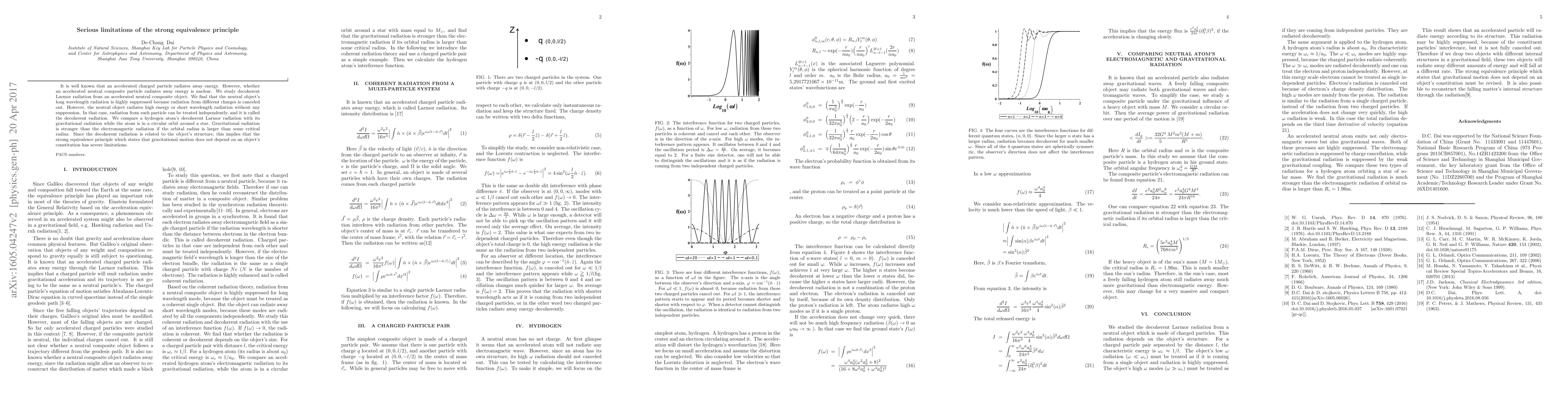 It is well known that an accelerated charged particle radiates away energy. However, whether an accelerated neutral composite particle radiates away energy is unclear. We study decoherent Larmor radiation from an accelerated neutral composite object. We find that the neutral object's long wavelength radiation is highly suppressed because radiation from different charges is canceled out. However, the neutral object radiates high energy or short wavelength radiation without any suppression. In that case, radiation from each particle can be treated independently, and it is called the decoherent radiation. We compare a hydrogen atom's decoherent Larmor radiation with its gravitational radiation while the atom is in a circular orbit around a star. Gravitational radiation is stronger than the electromagnetic radiation if the orbital radius is larger than some critical radius. Since the decoherent radiation is related to the object's structure, this implies that the strong equivalence principle which states that gravitational motion does not depend on an object's constitution has severe limitations..