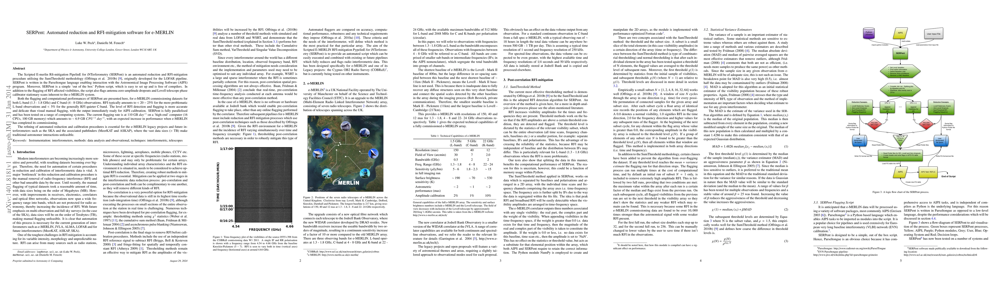 This paper introduces SERPent, an automated RFI-mitigation software for e-MERLIN, which improves flagging accuracy and efficiency, enabling faster data processing for future interferometers like SKA and MeerKAT.
