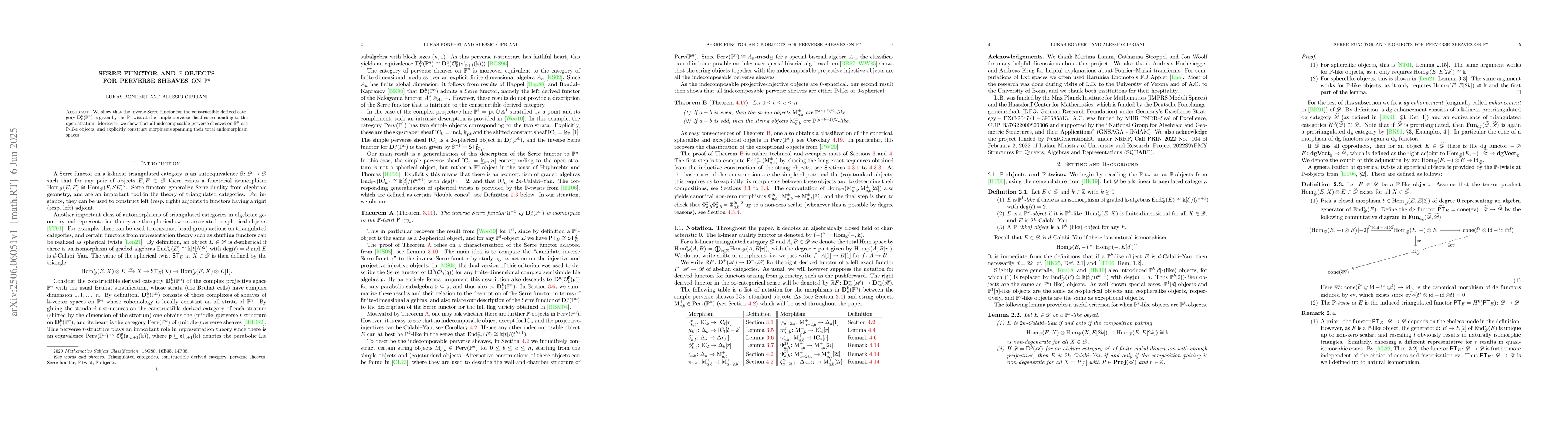 Researchers show that for perverse sheaves on $bP^n$, the inverse Serre functor is given by a simple twist and that indecomposable perverse sheaves are $bP$-like objects with explicitly constructed morphisms.