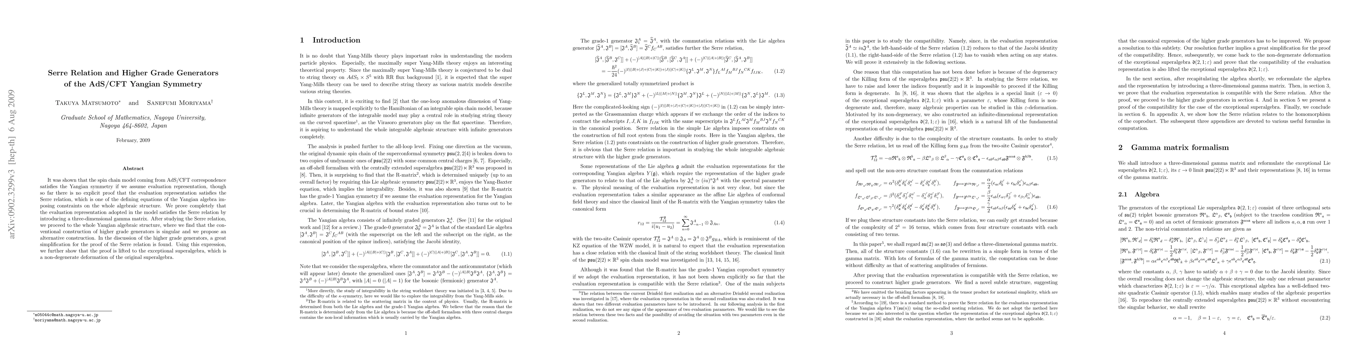 This paper proves that the evaluation representation in AdS/CFT spin chain models satisfies the Serre relation, a key equation for Yangian algebra. It also proposes an alternative construction for higher grade generators, simplifying the proof of Serre relation and extending it to exceptional superalgebras.