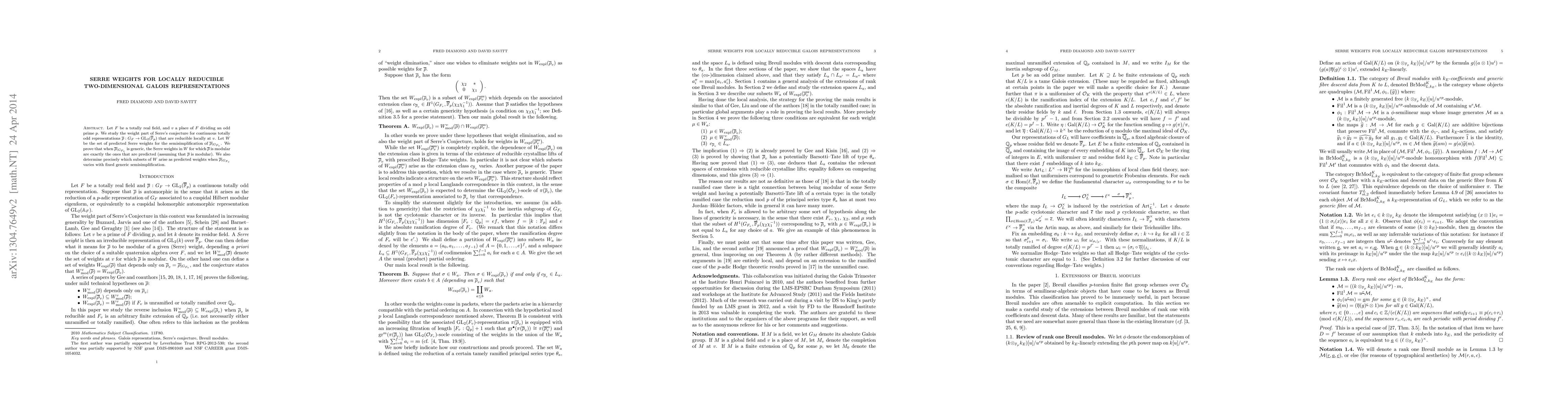 This paper examines the weight part of Serre's conjecture for two-dimensional mod p Galois representations that are locally reducible at a place dividing an odd prime p. The authors prove that the predicted Serre weights align with modularity conditions when the local representation is generic, and they determine the subsets of predicted weights arising from varying local representations while keeping the generic semisimplification fixed.