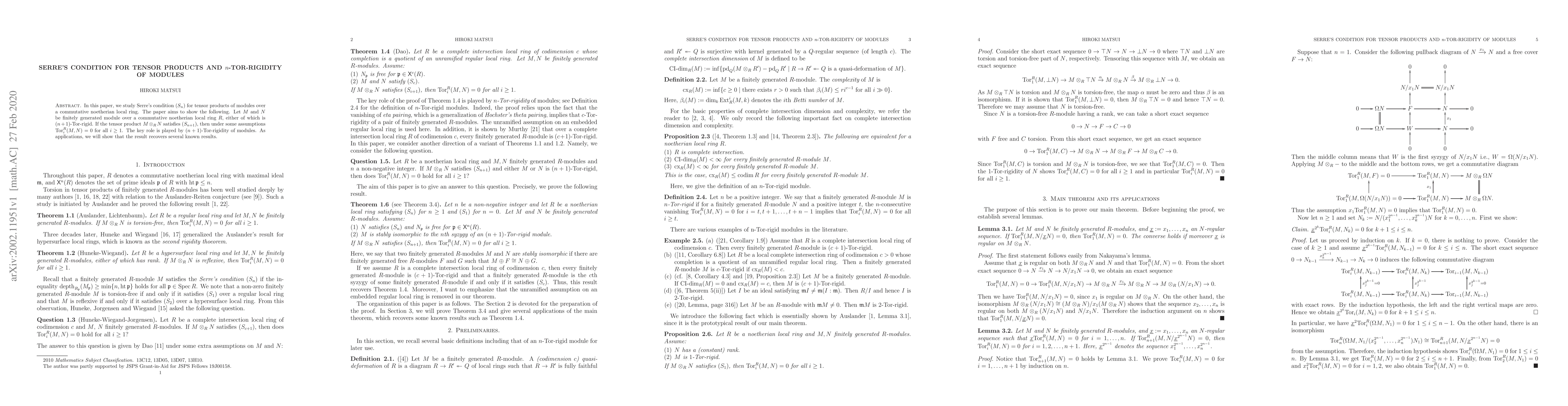 This paper investigates Serre's condition $(S_n)$ for tensor products of modules over a commutative noetherian local ring, proving that if $M$ and $N$ are $(n+1)$-Tor-rigid and $M \otimes_R N$ satisfies $(S_{n+1})$, then $\mathrm{Tor}_{i}^R(M, N) = 0$ for all $i \ge 1$. The study emphasizes the importance of $(n+1)$-Tor-rigidity in the result.