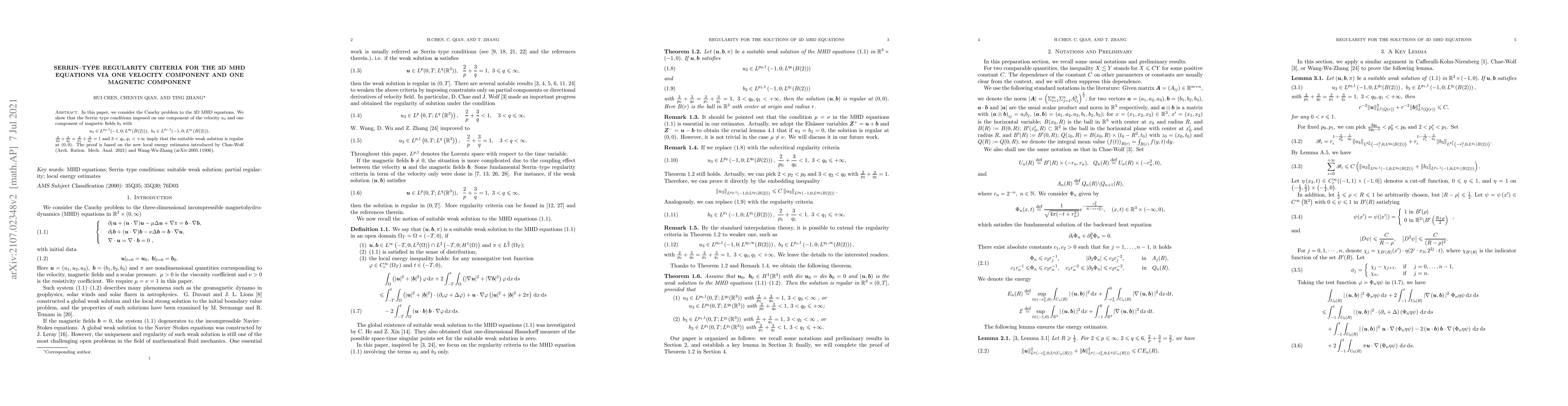 Researchers establish a new condition for regularity in solutions to 3D MHD equations, using only one velocity component and one magnetic field component, with specific p and q exponents that guarantee the solution is smooth at the origin.